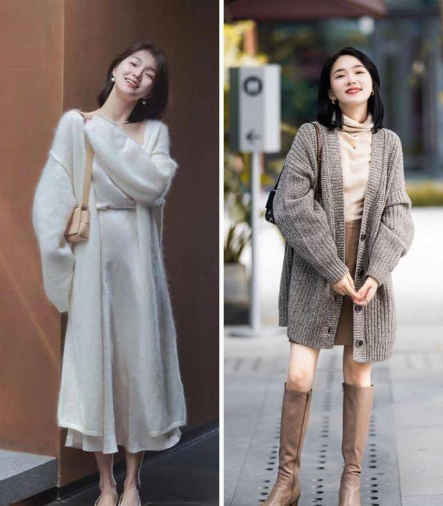 针织开衫有一些长度很长,我们需要根据自己的实际身材情况进行选择,例如168里面以上的姐妹们可以选择到脚踝长度的针织开衫,而小个子女生就不能乱穿,差不多到臀下长度的即可,刚好遮肉又不担心寒冷,简单的搭配就能够变得时髦又高级。