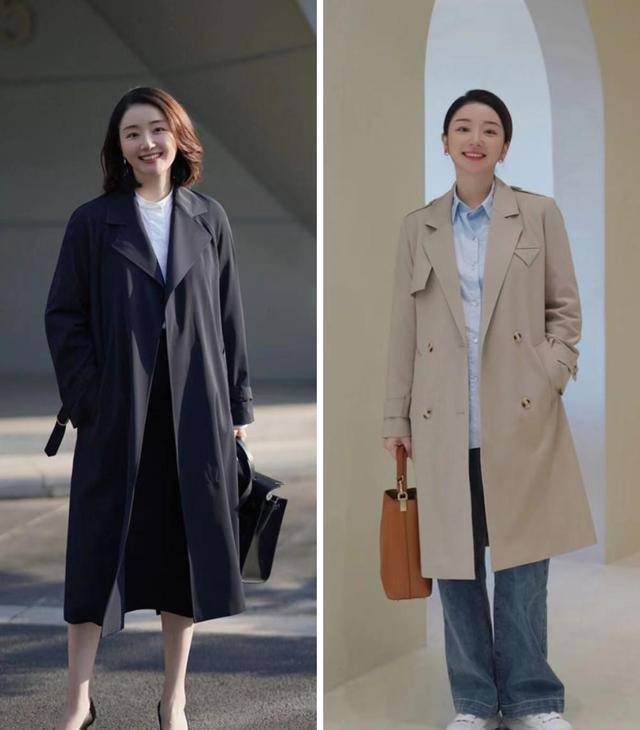 首先,我们为大家推荐的是风衣外套的穿搭,是我们在每一年秋天必备的一款单品,它的风格既可以兼顾职业也能够穿出休闲,是不错的凹造型利器。如果是用于上班穿,推荐选择面料挺括、有垂感的藏蓝色风衣,看上去更加沉稳大方,提升你的气场范。如果是平时穿,可以选择内敛的卡其色风衣,会轻松随性一点。