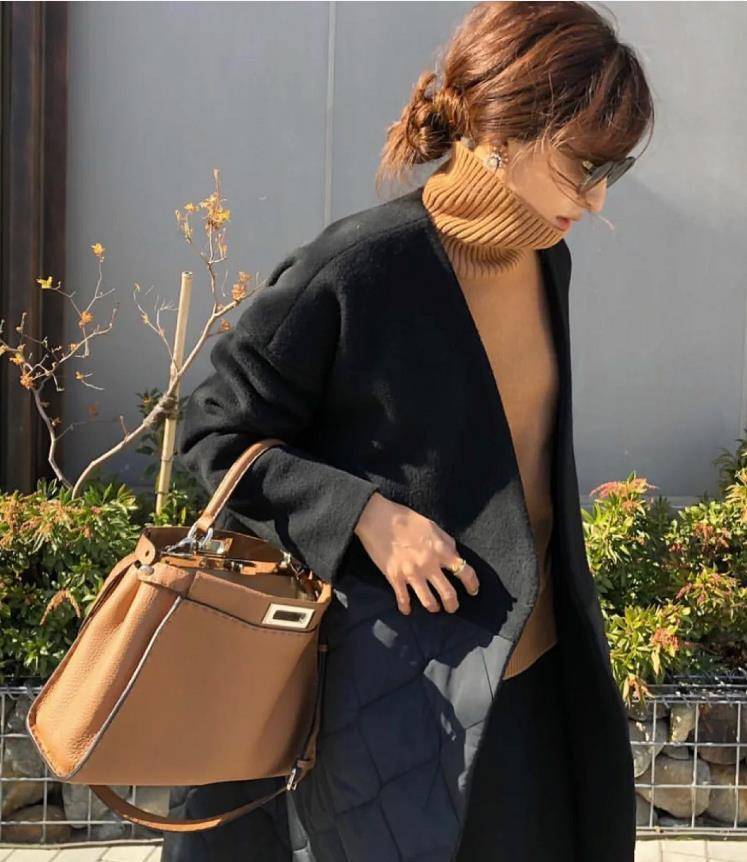 最近的温度下降得比较快,各位小仙女们出门可要做好保暖工作了。特别是对于上了年纪的中年女性,除了要注重保暖,还要学会正确的穿搭。想要让自己看起来更暖和一些,多多利用起棕色系就对了,棕色系毛衣内搭,即使外面搭配的是黑色大衣,也不会显沉闷。手里提着的棕色包包,恰到好处与毛衣相呼应,很高级又气质。