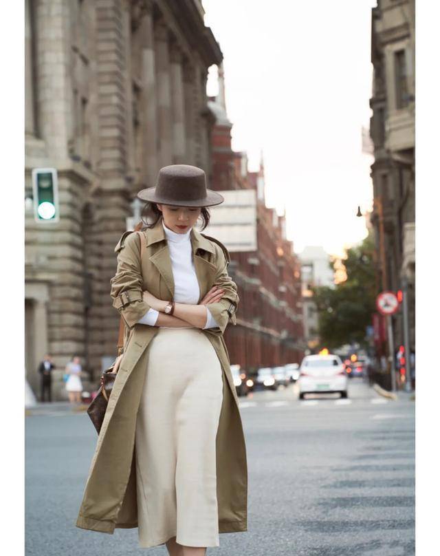卡其色风衣作为风衣中的经典颜色,经典百搭,搭配米色的半裙,显得更加优雅,有型的半裙凸显出女性的曲线美,而同色系的穿搭,让整体看上去更加高级质感,又美又飒!展现出一个女人的魅力与气质,这样的穿搭经典又时髦。
