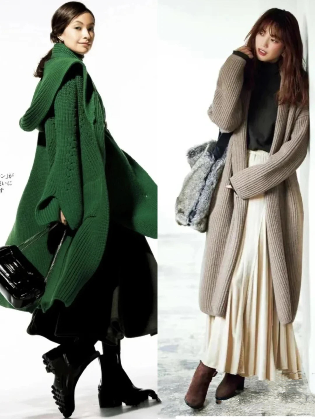 软糯又温柔的穿搭,一定少不了针织元素呀。相对于乏味的针织衫,或者针织半身裙,长款的针织开衫来的更加温柔大方。尤其是这种中长款的毛呢开衫,更适合个子高挑的姑娘。 当我们选择中长款针织开衫的时候,可以尝试搭配长度稍微超过针织开衫的裙装。轻盈的裙摆自然的展露出来,更多了几分静谧与温柔。不管是顺色还是撞色的搭配,都更加的个性出众。