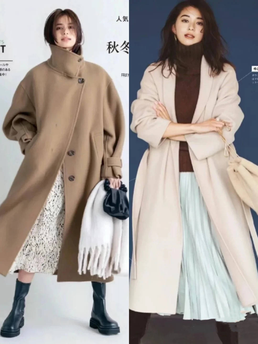 风衣或者毛呢大衣,在40+女人的穿搭中,也是随处可见的单品。虽然不建议40+的女人,选择太过浮夸的色系,但是选择毛呢大衣的时候,却可以尝试更加独特的版型。 在简约款毛呢大衣的基础上,增加小小的个性装饰,就足以提升整体品味。比如竖领的点缀,或者不规则的的纽扣装饰,在宽松的毛呢大衣之上,都可以更好的凸显时尚品味。