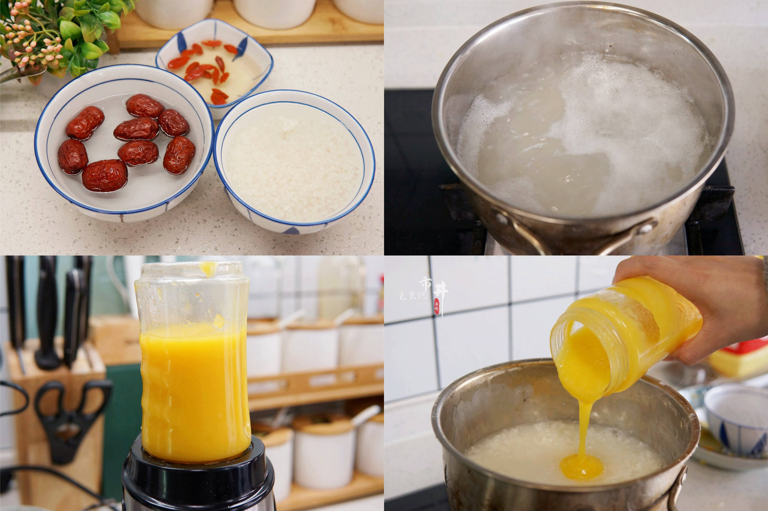 食材:南瓜一块、大米半碗、红枣、枸杞适量