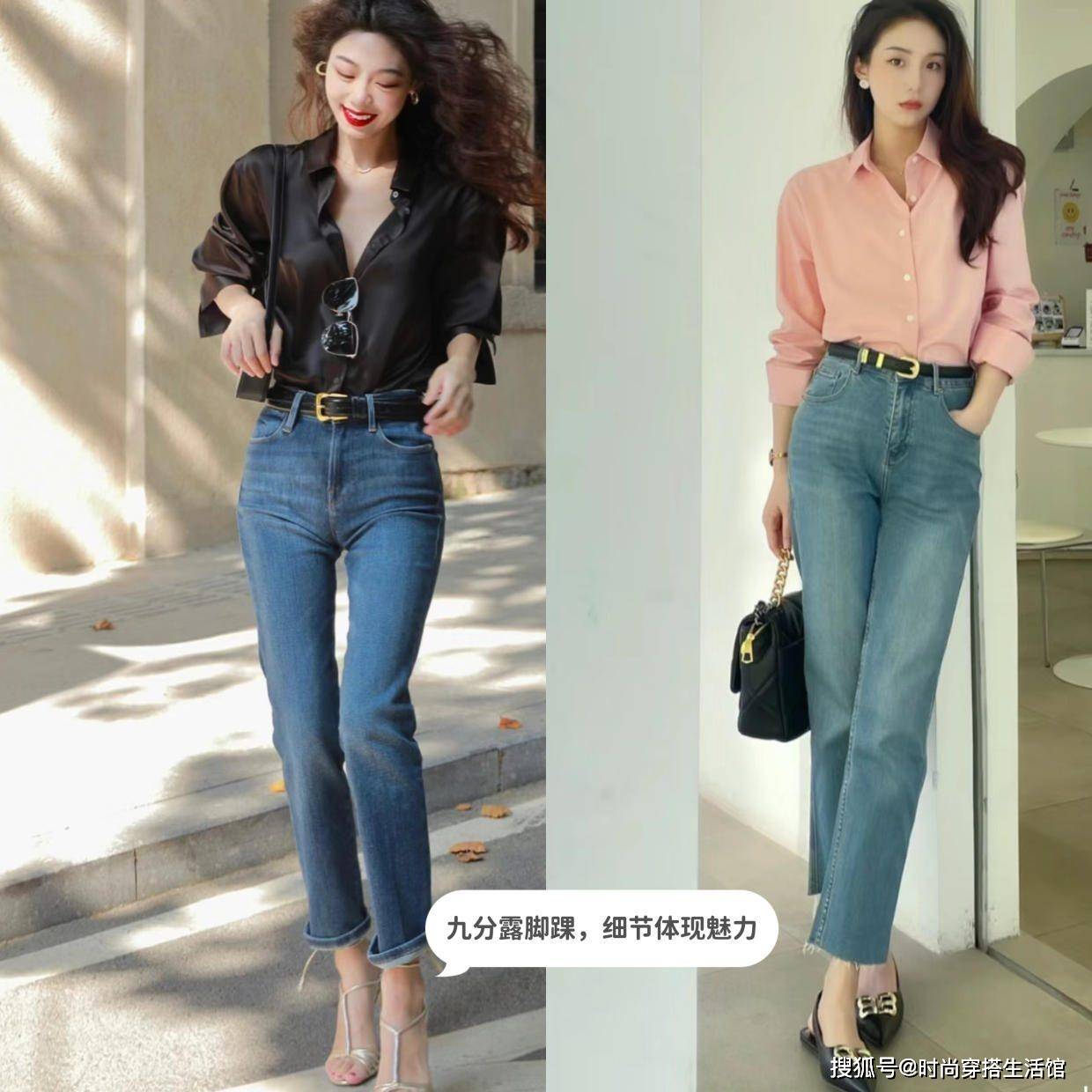 首先,日常搭配要学会露脚踝,虽然牛仔裤和衬衫都是较为经典的服饰,但是选牛仔裤也不要随意任性。九分裤是大家在春季比较喜欢的一种长度,九分牛仔裤的搭配可以巧妙露出脚踝。