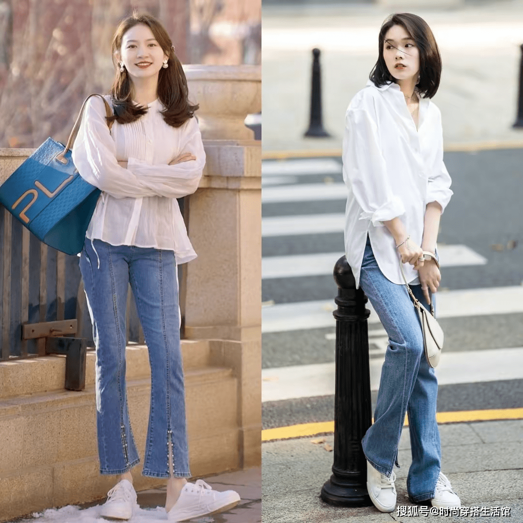 毋庸置疑,“白衬衫+浅蓝色牛仔裤”便是春夏季节翻牌率最高的组合,像蓝天白云般的干净配色,清清爽爽,一点都不挑人。