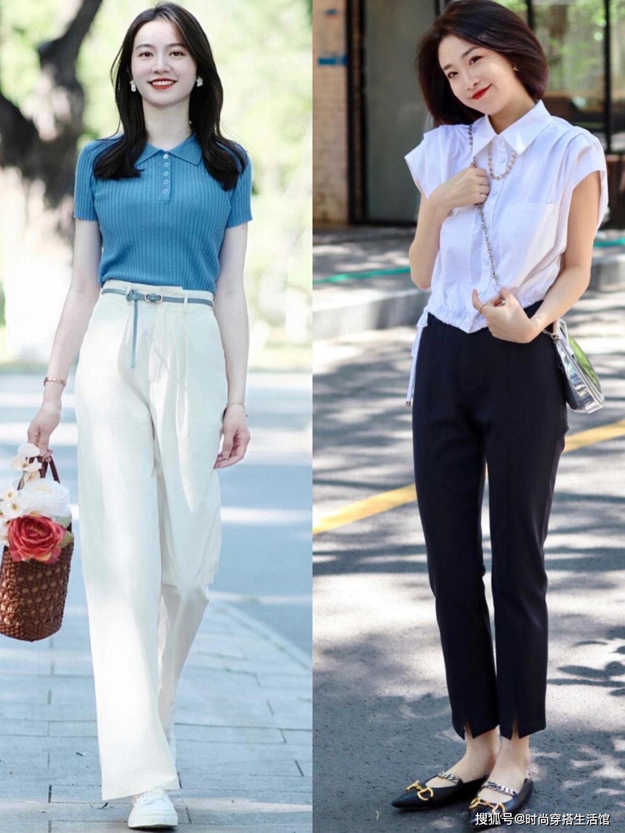 一到夏季,除了有清凉的裙装搭配供我们选择之外,九分裤搭配也是一种不错的选择,九分裤可以较好地展现出脚踝的纤细感,达到显瘦显腿长的目的。