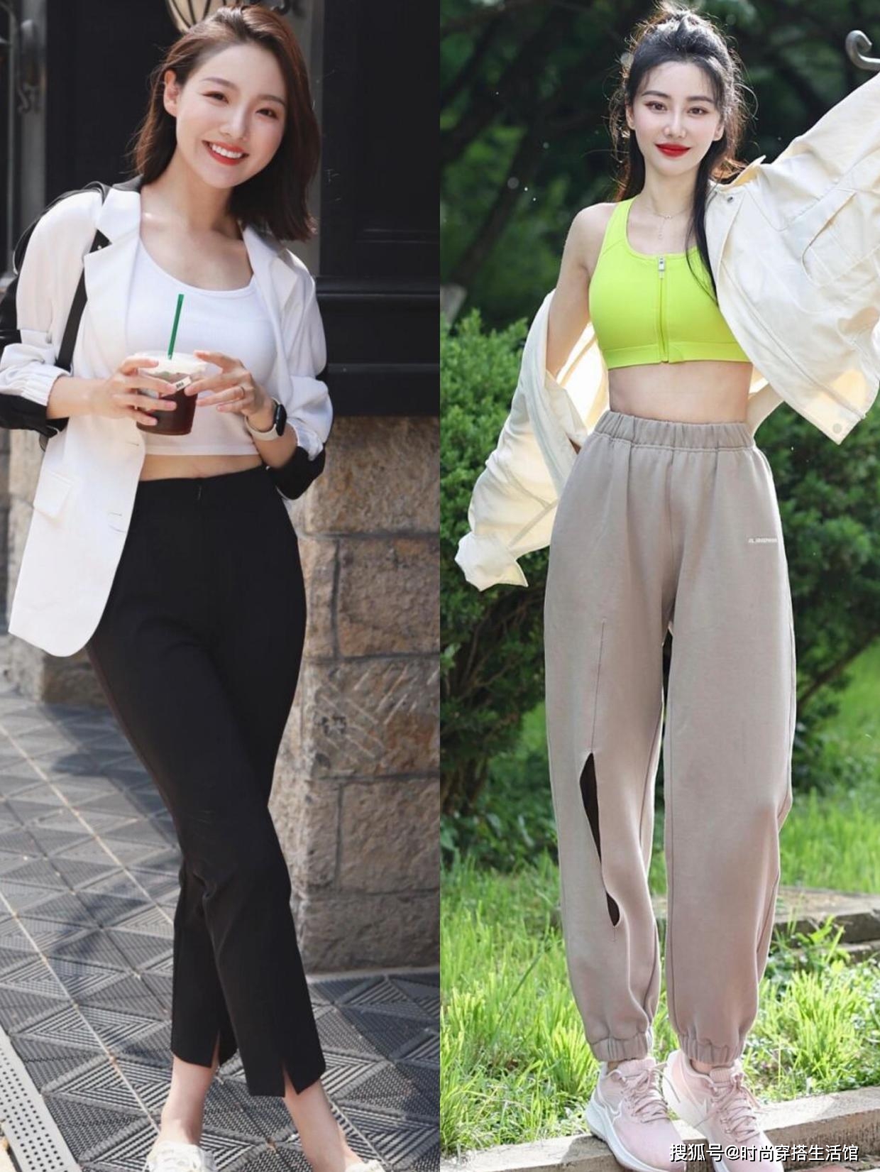 第二部分:春天的九分裤如何搭配才时髦look1.九分运动裤+T恤背心