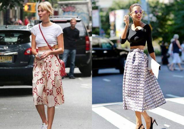 印花裙搭配露胃短上衣,腰线还能再提高一大截,更能显着腿长还能性感小蛮腰。