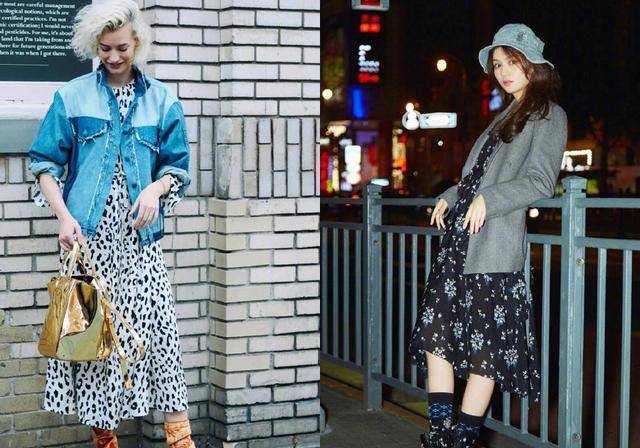 搭配一件外套,把印花长裙穿出印花半裙的效果,也是一个可以尝试的方法。
