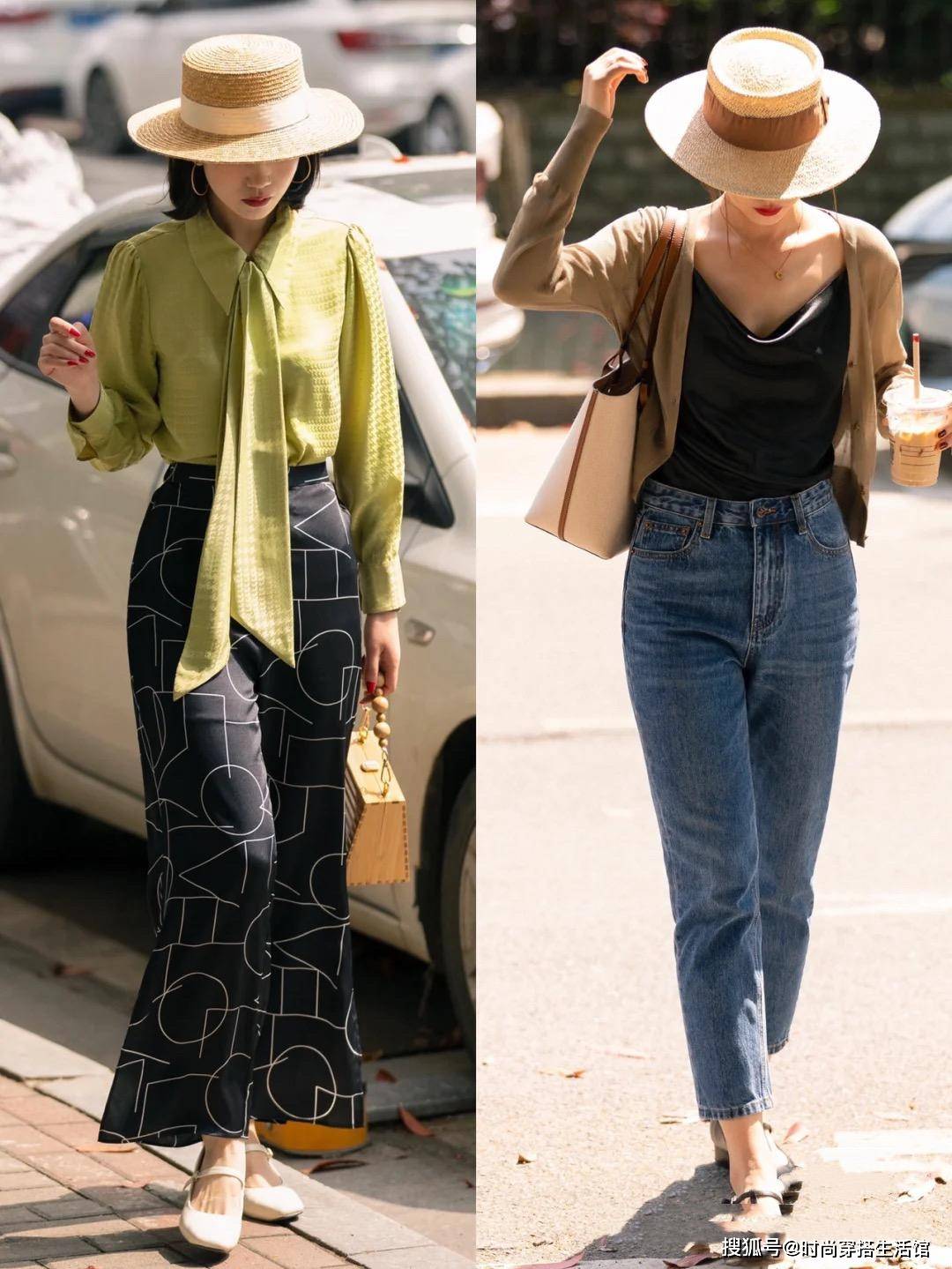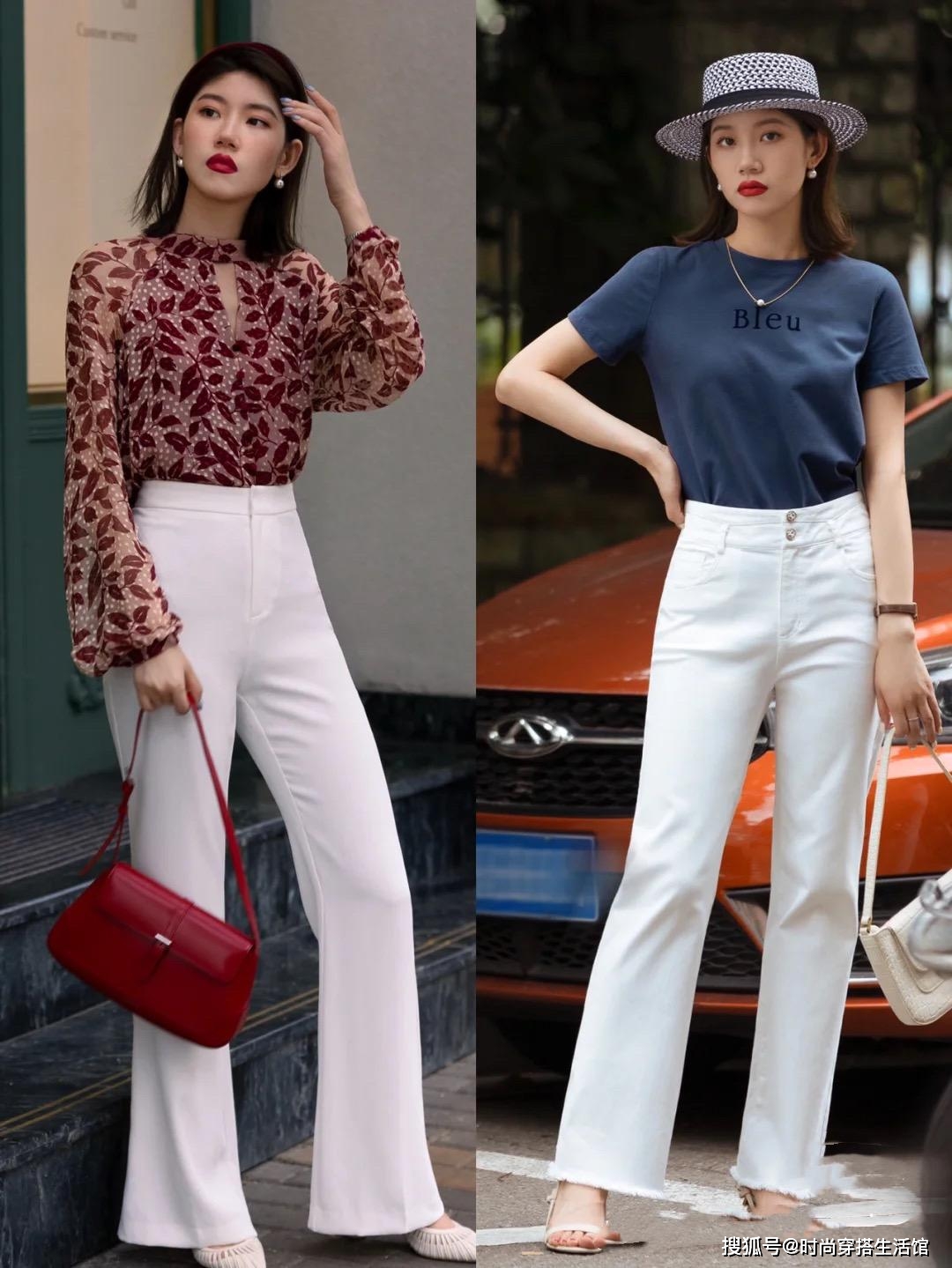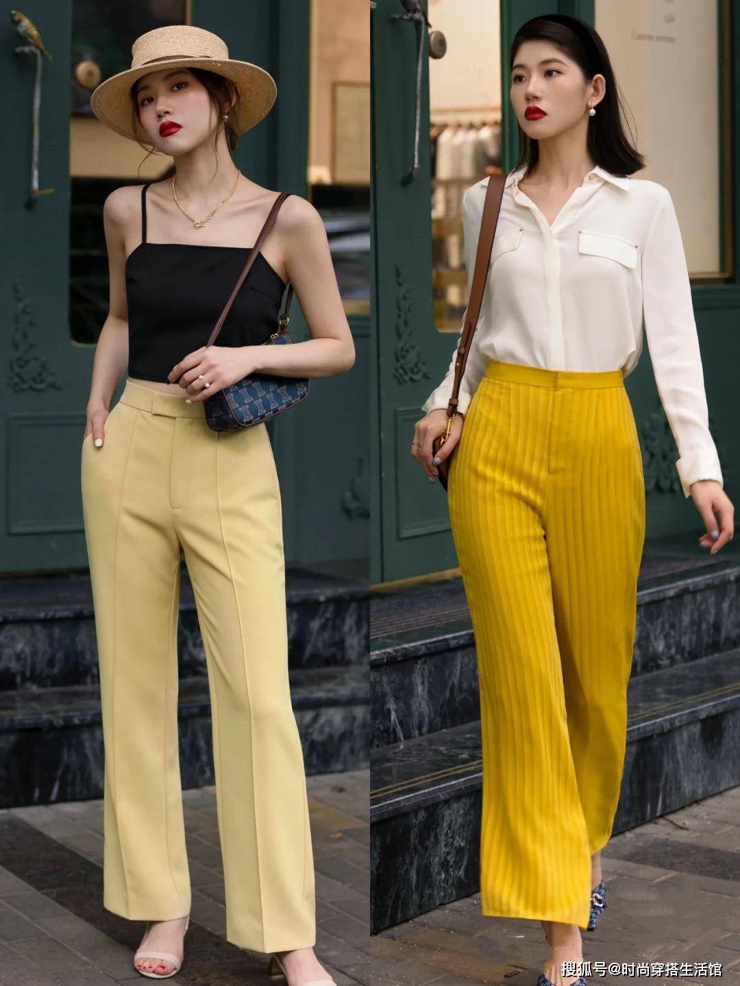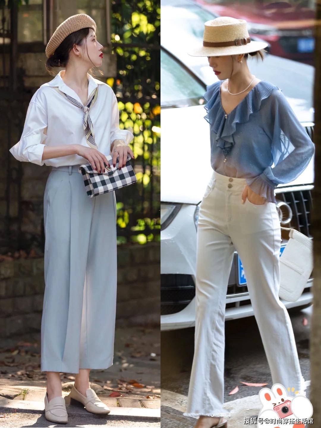 为什么不建议大家选择小黑裤进行搭配呢?其实主要是因为小黑裤的款式和色调太千篇一律了,难以搭出花样感不说,还会显得整体穿搭老气横秋。参考下图,选择浅色系或低饱和亮色进行搭配,会让整个人看上去气质更柔和,视觉上也会更显年轻明媚!