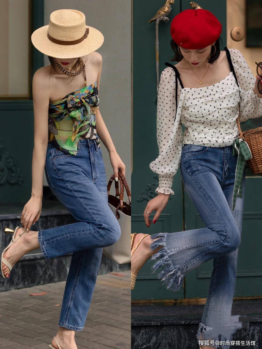 这种九分牛仔裤最大的优点在于它能够直接把我们腿最细的脚踝露出来,这样穿就不会觉得臃肿,尤其是那些腿粗但是却想要能够通过穿裤装修饰身材比例的小姐姐,就可以大胆的通过这种九分的裤子凹造型,一定不会出错,反而会显得很轻便。