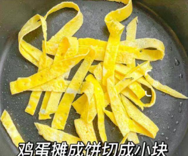 正确制作步骤: 第一步:提前准备新鲜丝瓜,猪肉,香菇和其他食材,鸡蛋打在容器里,加上半勺食盐,用力搅散备用,锅中烧热刷上一层油,蛋液煎至成型,记得要均匀铺在锅底,让两面定型,盛出放凉,切成若干细丝。