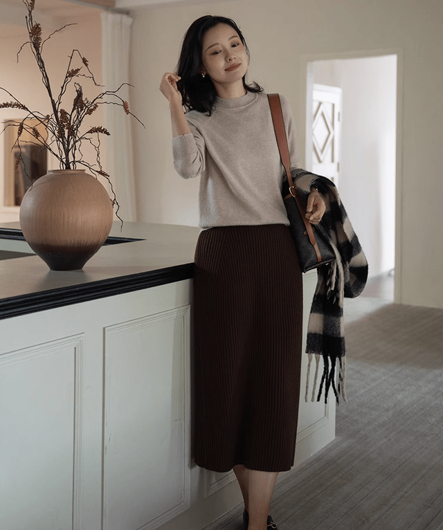 同时,我们可以和裙子进行搭配,大家可以选择这一件秋冬简约羊毛针织半身裙,它更加的百搭,而且又保暖舒适,这一条裙子分别有两个颜色,深棕色,时尚洋气,搭配上大地色的外套或者是针织衫都很好看,还有黑色,可以随意和各类的大衣外套,或者是小香风外套组合显瘦又百搭。
