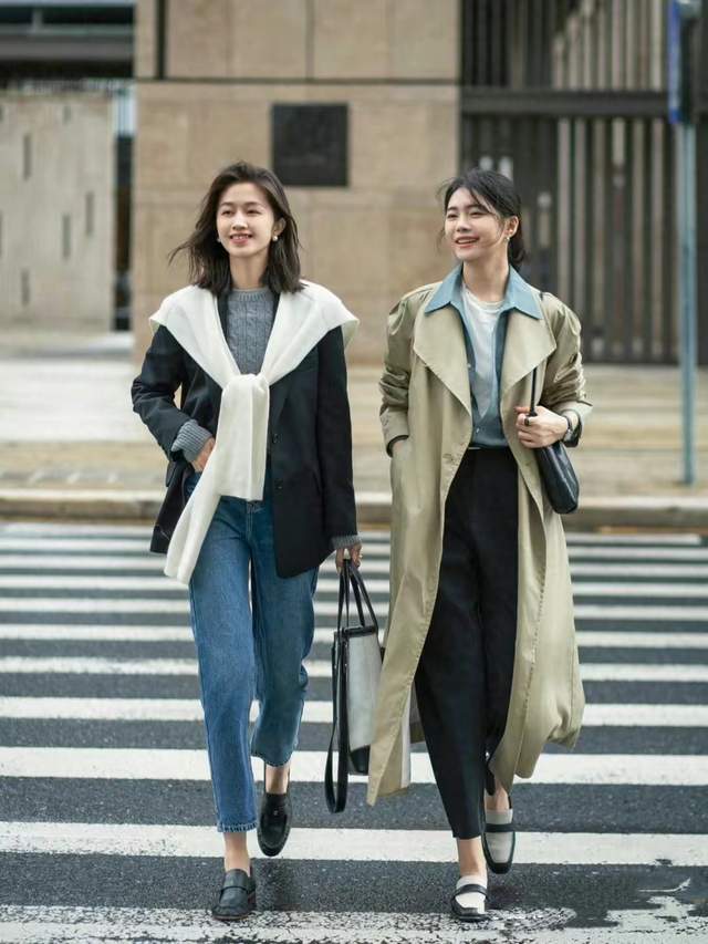 同时可以根据身材来选择你的衣服长度大衣,风衣也是有短款和长款区别,像下面这两位素人博主的穿衣示范就选择了中长款的大衣外套,搭配上裙子和长裤一样也能穿出女神范儿。