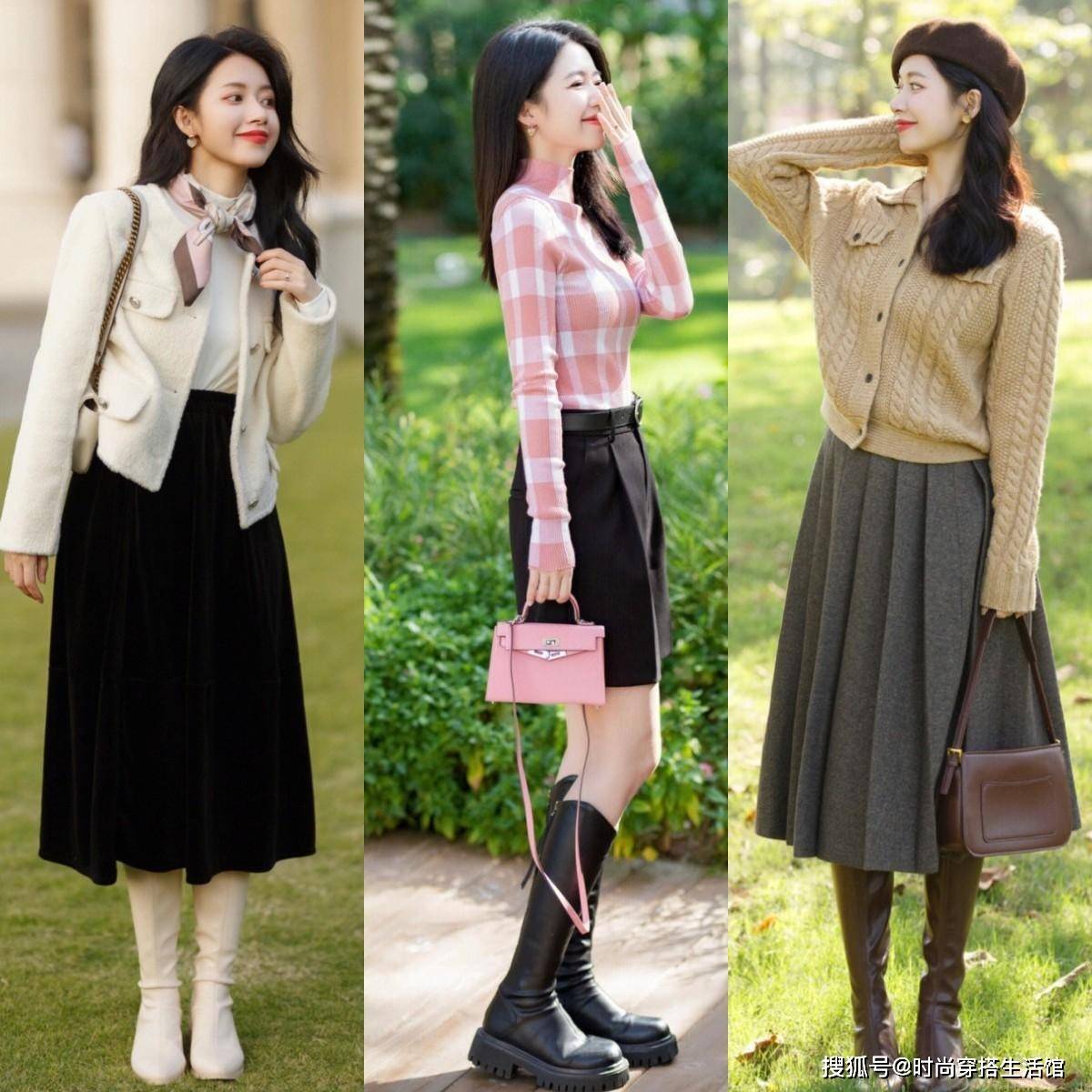 梨形身材的姐妹们推荐选择“紧身版型”的上衣来搭配宽松感半身裙,“上紧下松”的搭配方式完美适配梨形身材的特点,可以在视觉上程度的实现优化身材的效果,显瘦又时髦,轻松穿出满分的层次感。