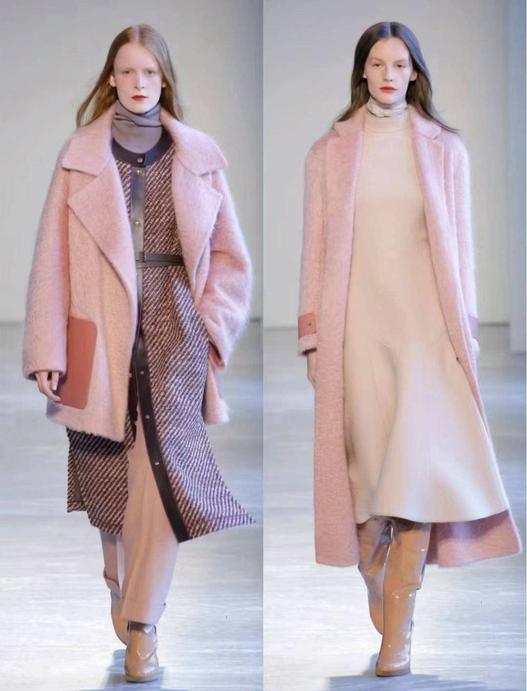 冬天穿着容易显得沉闷,而柔和的粉色能够打破这种沉闷感,为整体造型增添一份亮点。