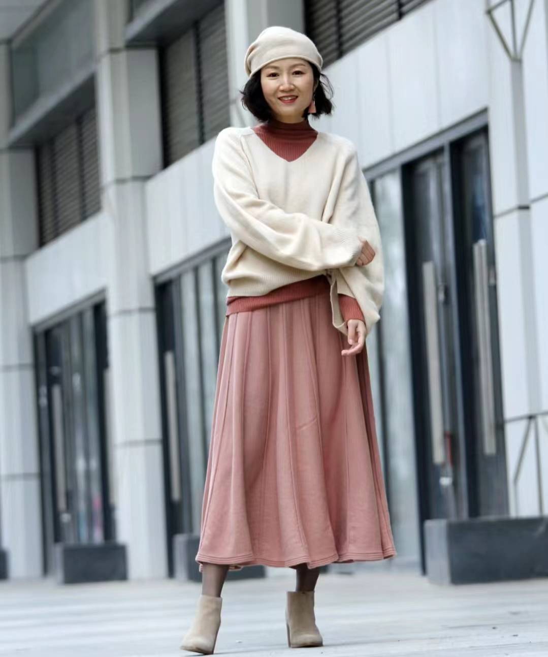 燕麦色给人一种温暖、舒适的感觉,适合冬天的氛围。对于50、60岁的女性来说,选择燕麦色的服装能带来一种温暖、舒适的穿着体验。