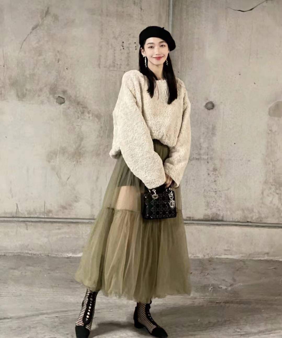 燕麦色属于明度较低的白色,对肤色没有冲击力,即使大面积运用也不会有违和感。对于50、60岁的女性来说,多穿燕麦色还能起到显白的效果,提升整体气色。