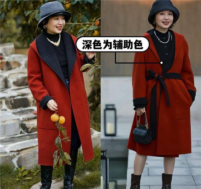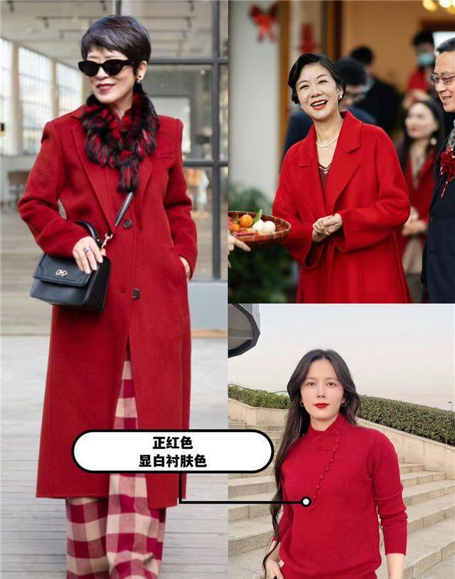 因为中老年女性往往皮肤有暗沉的问题,如果你的面部皮肤状态不是特别好,暗沉发黄就容易显老,我们可以在上半身选择具有一定亮度的富贵色彩,比如红色或者是紫色,靠近我们的面部肌肤和脖子的肌肤,对于我们的面色提亮效果会很好,可以让气色看上去更红润。
