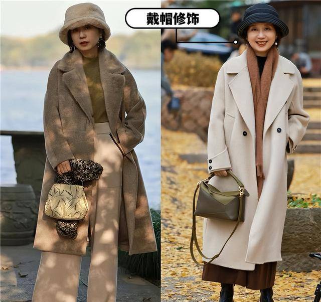 此外,配饰的修饰也是不可或缺的,尤其是在冬日里,其实像这样一顶帽子,它也可以为我们的造型增添一些设计感,冬日戴上这种具有贵气感的帽子或者是围巾,提升了氛围感,再借助富贵色的配饰修饰,也可以加强造型的潮流感。