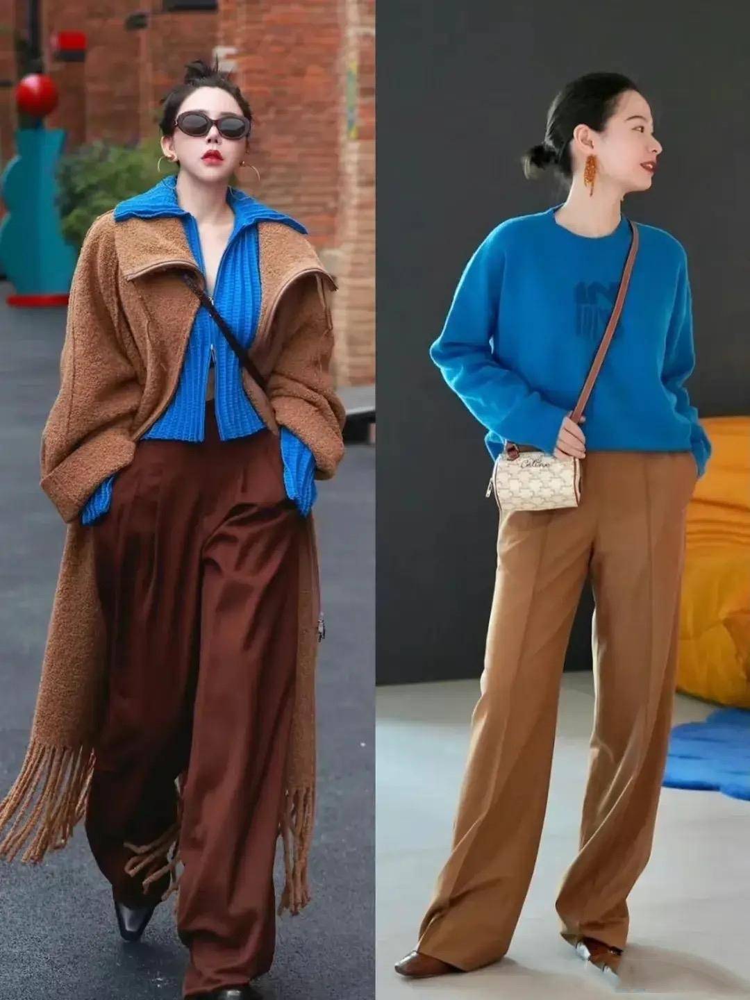 在选择衣服颜色时,我们可以将美拉德色作为主基调,配以适当的亮色或柔和的色彩来点缀。比如,一件米色的长款外套搭配一条酒红色的宽松长裤和浅蓝色的衬衫内搭,再搭配一款卡其色的小包,整体造型既显得高级大气,又增添了一丝亮色的亮点。