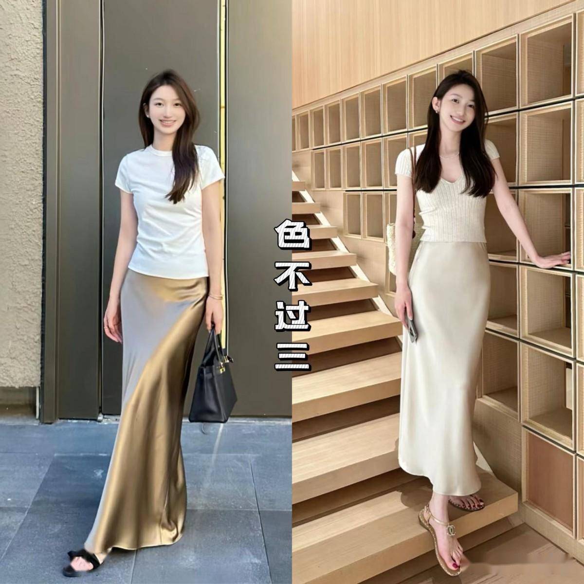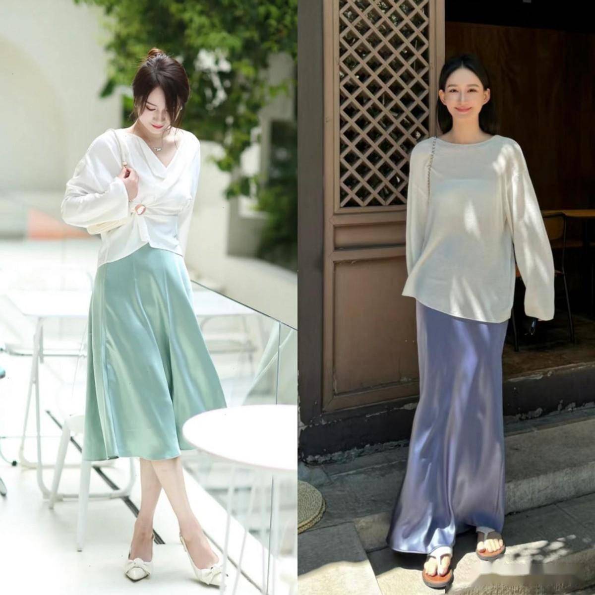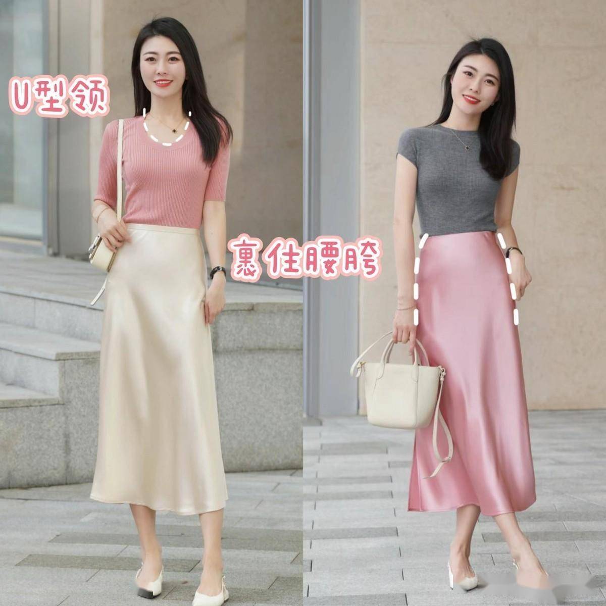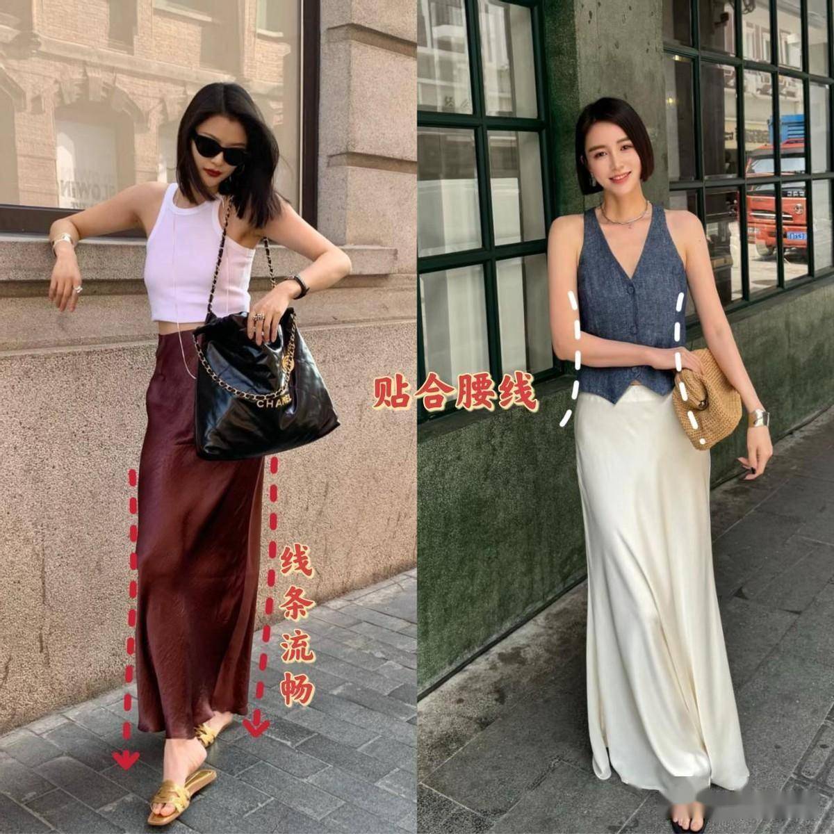 市面上大多数的醋酸裙,都以半身裙为主,可塑性更高,能够解锁更多的“时尚造型”。挑选半身醋酸裙很有讲究,尤其是裙腰位置,应当贴合肌肤线条,才能勾勒出小蛮腰。
