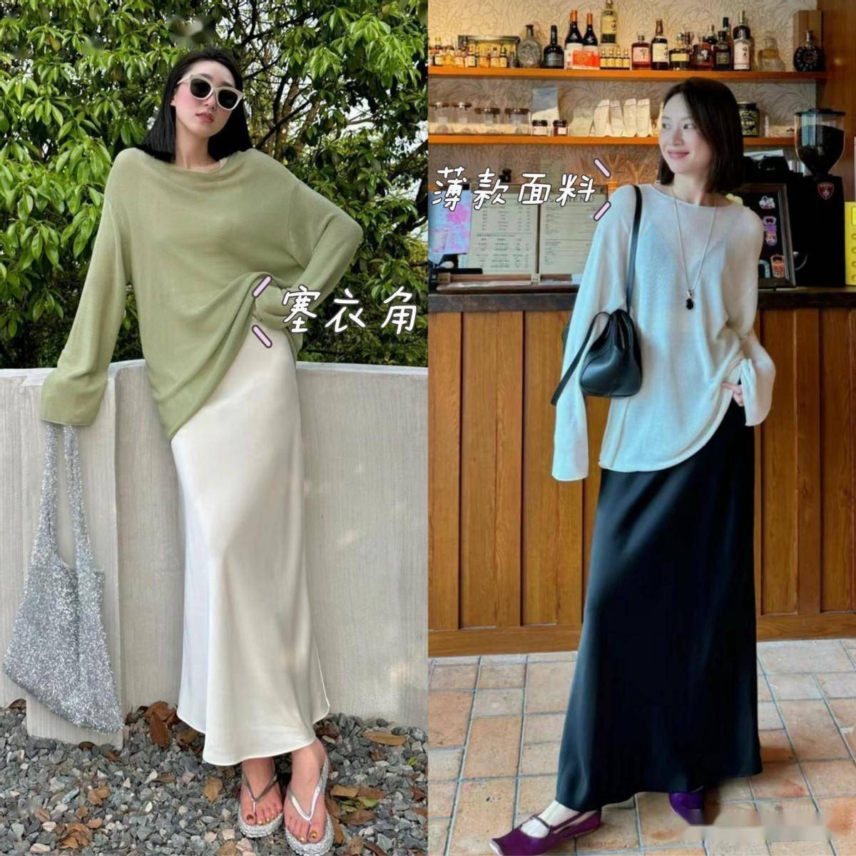 ②薄款遮臀针织衫+醋酸裙,尽显慵懒气质