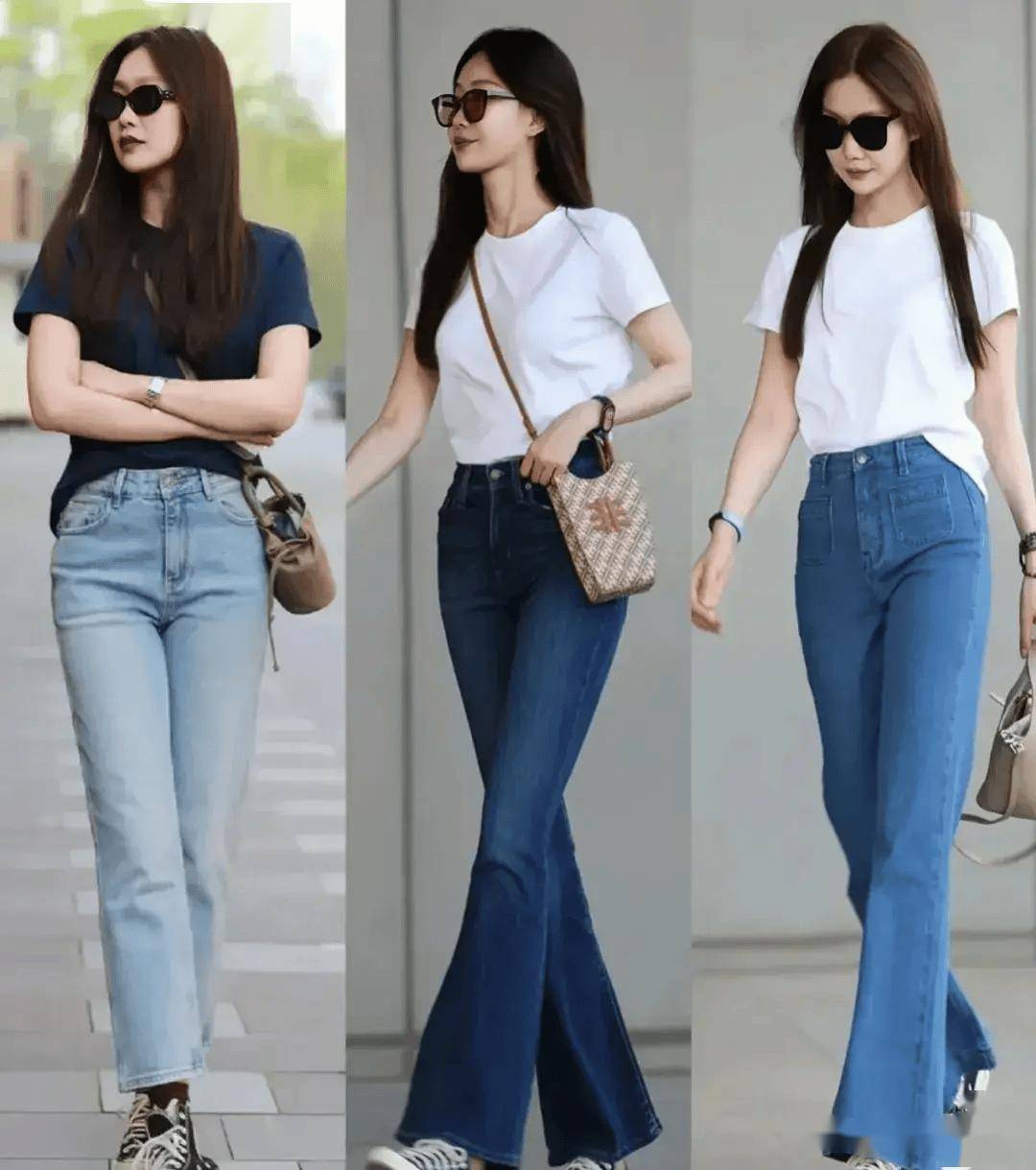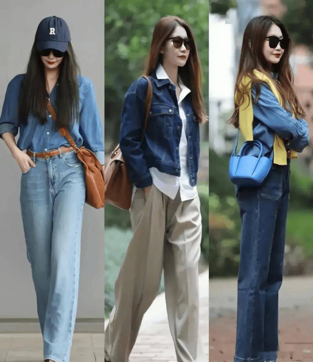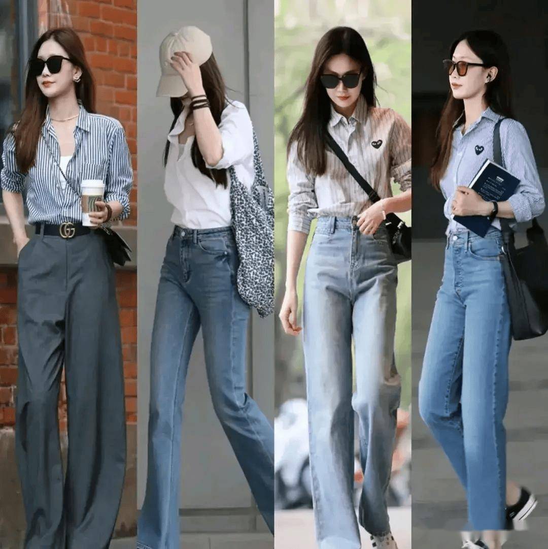 最百搭又不挑身材的是直筒牛仔裤,夏天可以选择九分的长度,修饰腿型又显腿长。如果喜欢牛仔阔腿裤的话,就选择盖住脚面的长度,这样也显腿长。