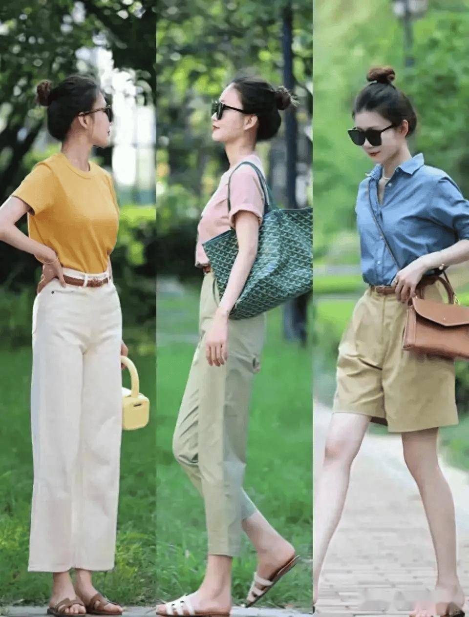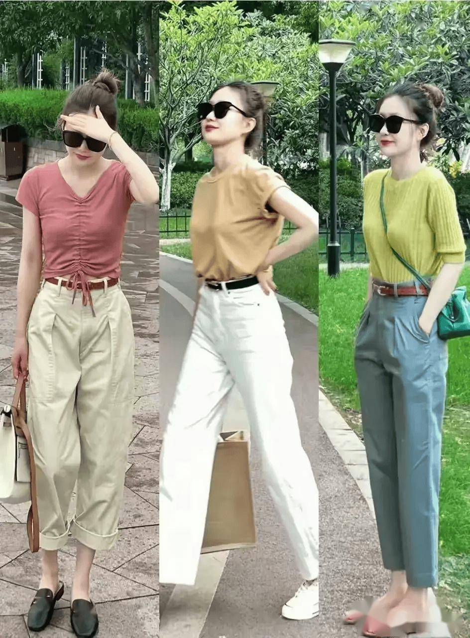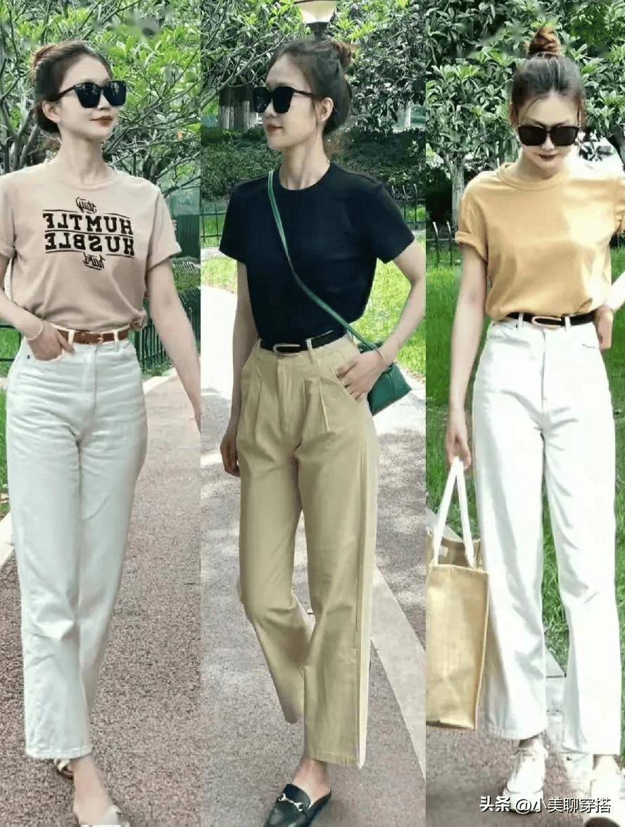 最百搭又不挑身材的是直筒牛仔裤,夏天可以选择九分的长度,修饰腿型又显腿长。如果喜欢牛仔阔腿裤的话,就选择盖住脚面的长度,这样也显腿长。