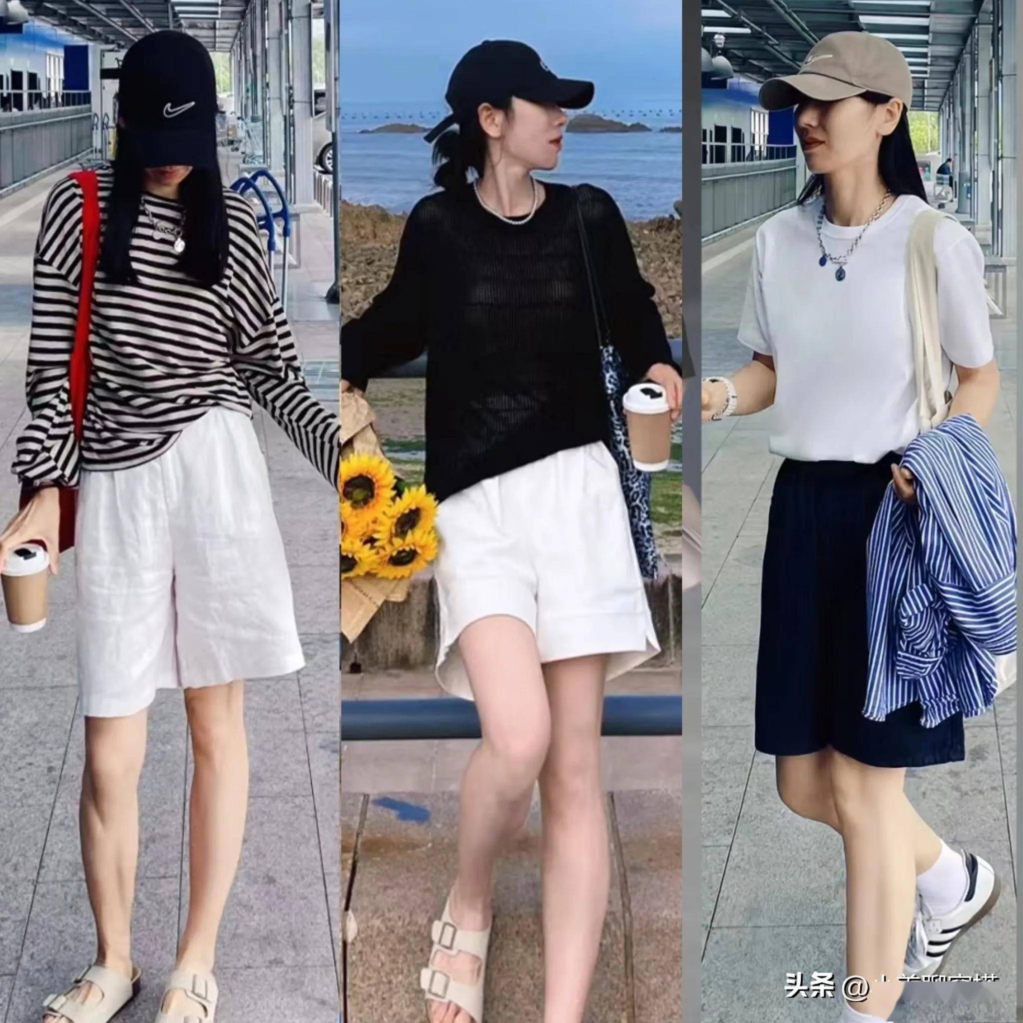 选择经典的黑色或是白色短裤,清爽自然又特别显瘦减龄。黑白条纹衫搭配白色五分短裤,轻松自在的休闲风格,又特别的帅气,怎么穿都不过时。