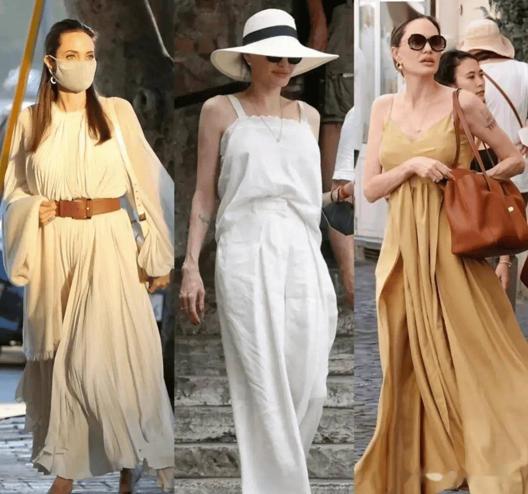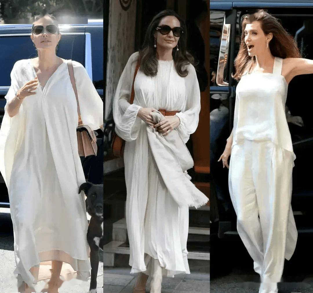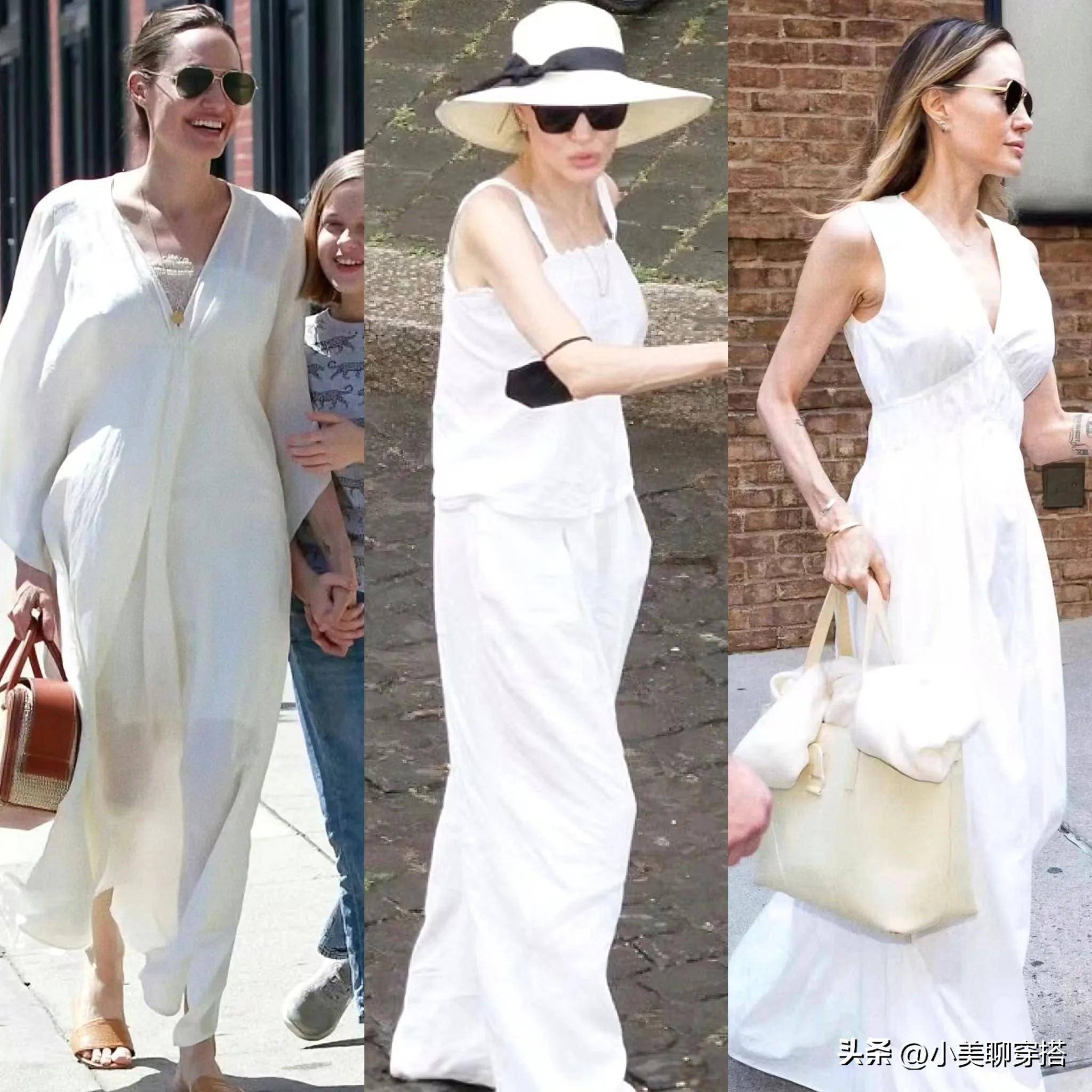 比如朱莉选择了白色的连衣裙,包包与鞋子则是低调的大地色系,看着既不张扬,又显得高级,而且包包与鞋子选择了同色系,看着就更有质感了。