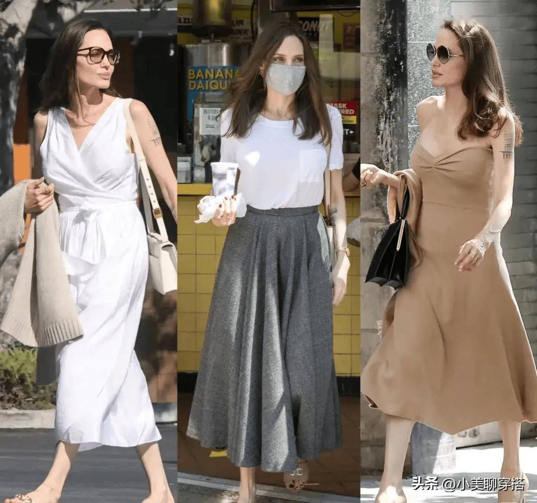 大地色系也是极简风出镜率非常高的,其中卡其色、米色、咖色都是很显高级的颜色。比如朱莉穿的卡其色露肩连衣裙,简约而高级,又带着沉稳感,很适合成熟女生。