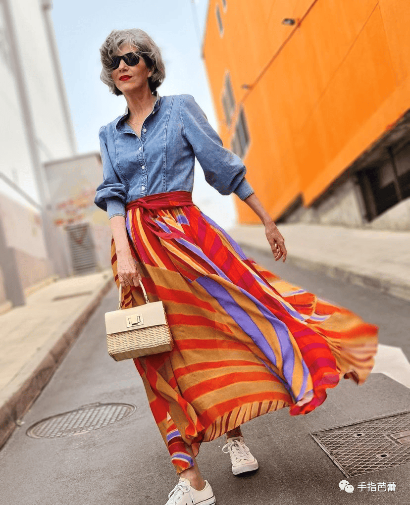 而说到缤纷色彩的发挥,纽约的银发时尚博主Carmeny一直在为同龄人和年轻人们提供裙子的灵感。