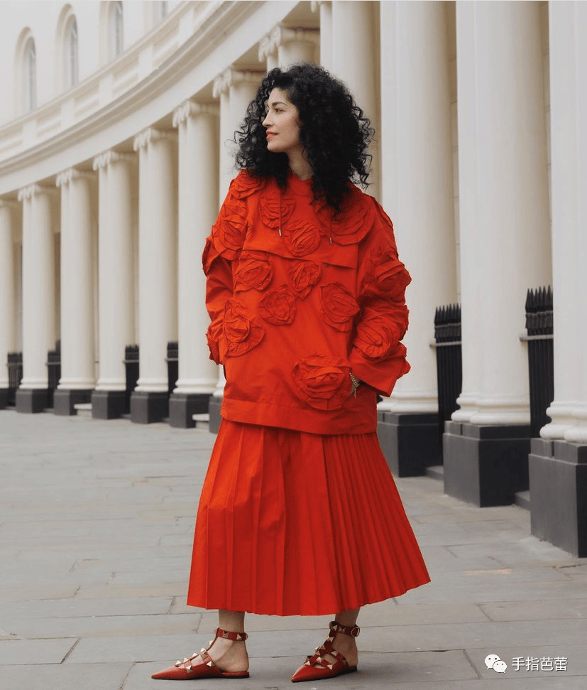 或者,干脆自如地将大红色作为裙装呈现,尤其在步入40岁以后,一条颜色正统的红色裙子,提气又加持气场,可以作为专属你的裙装战袍。