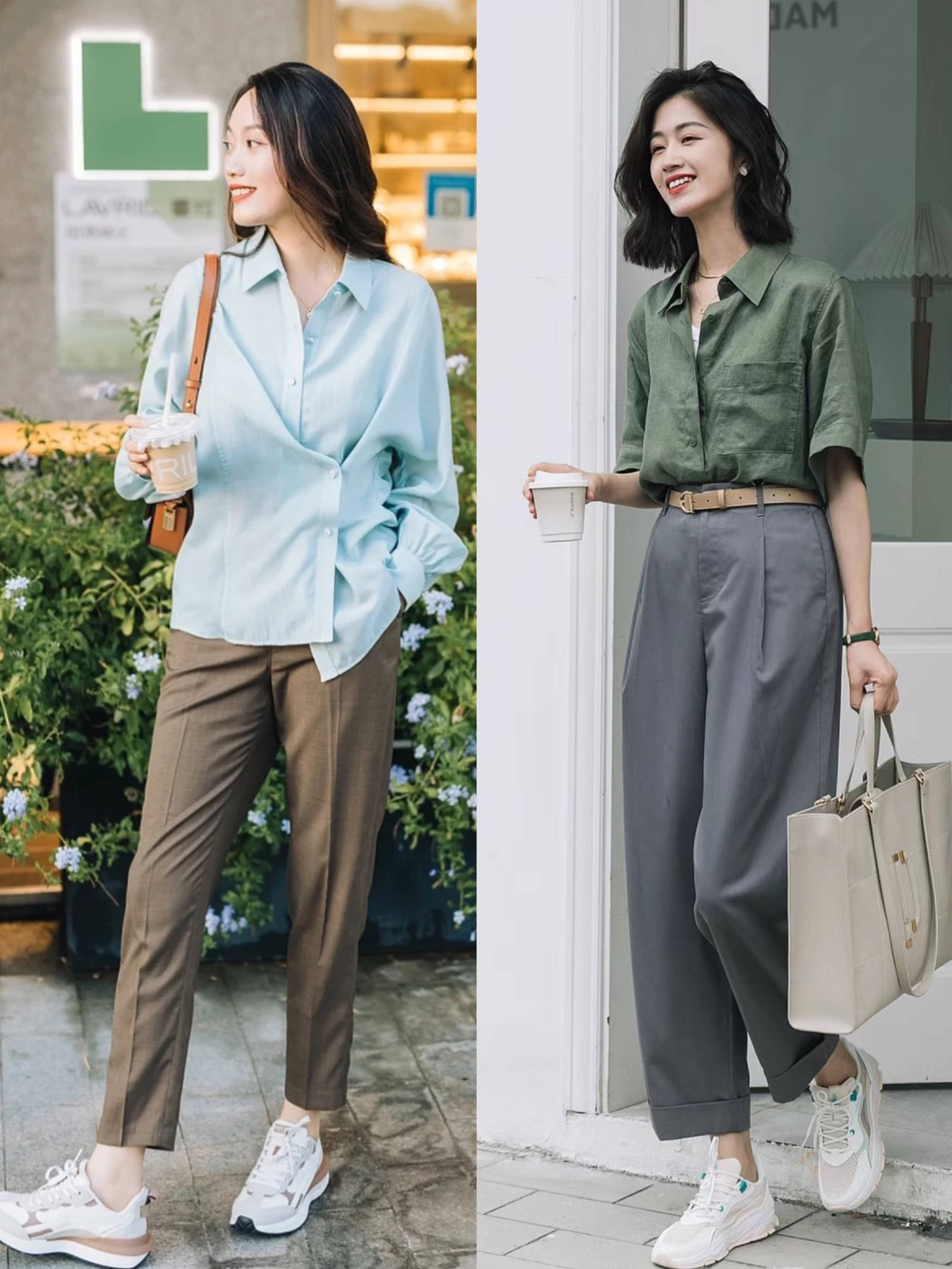 九分裤+老爹鞋,就是一组奇妙的组合。通过阔腿的九分裤,掩盖有点发福的身材。搭配厚底的乐福鞋,舒适性更强,每天游走在菜市场、健身房都不会觉得累。