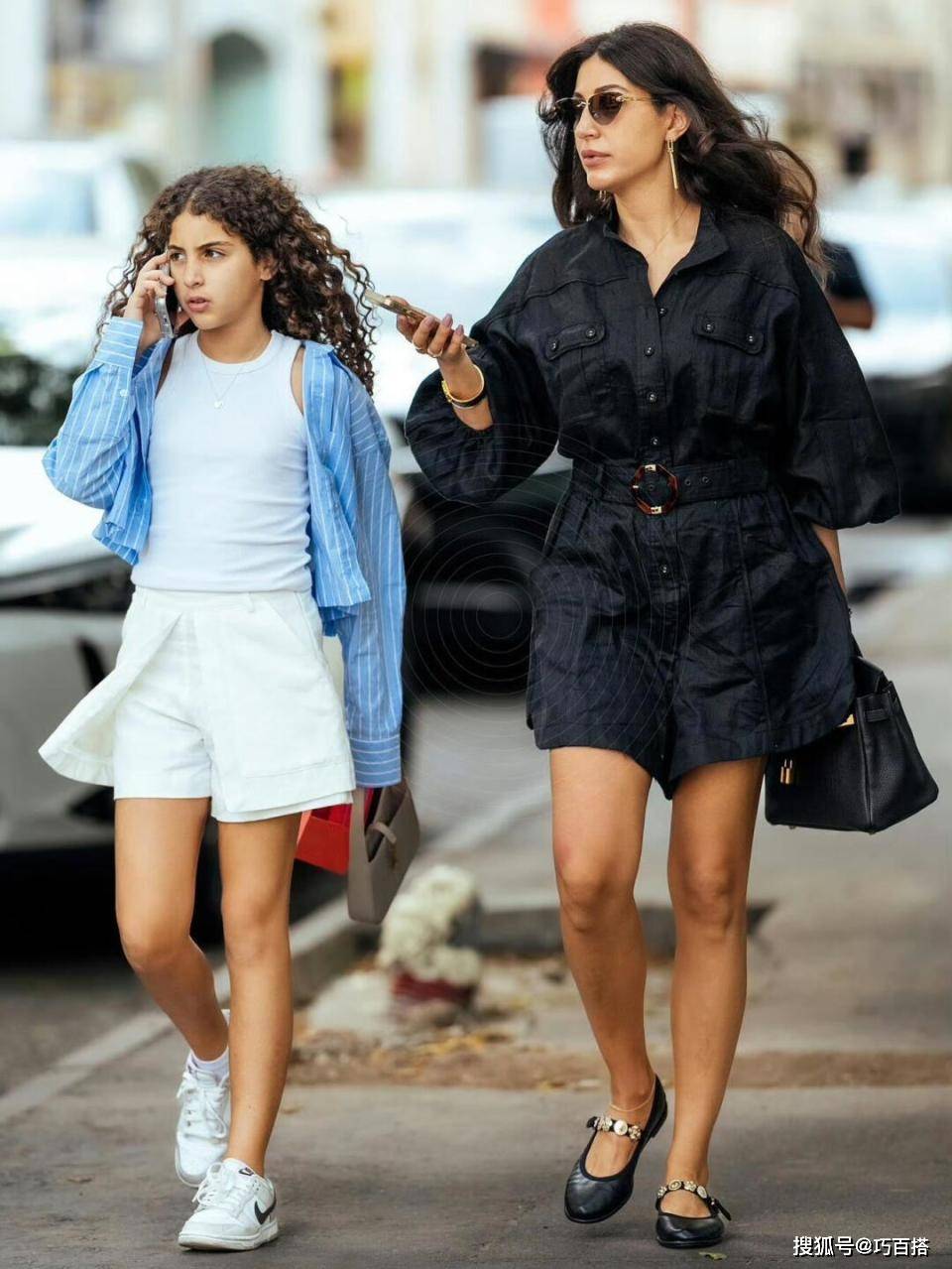 结合早秋温度来看,短袖配长裤或者长袖配短裤成为了主流,无论大人小孩都会选择这种穿衣模式,安全低调又顺眼!