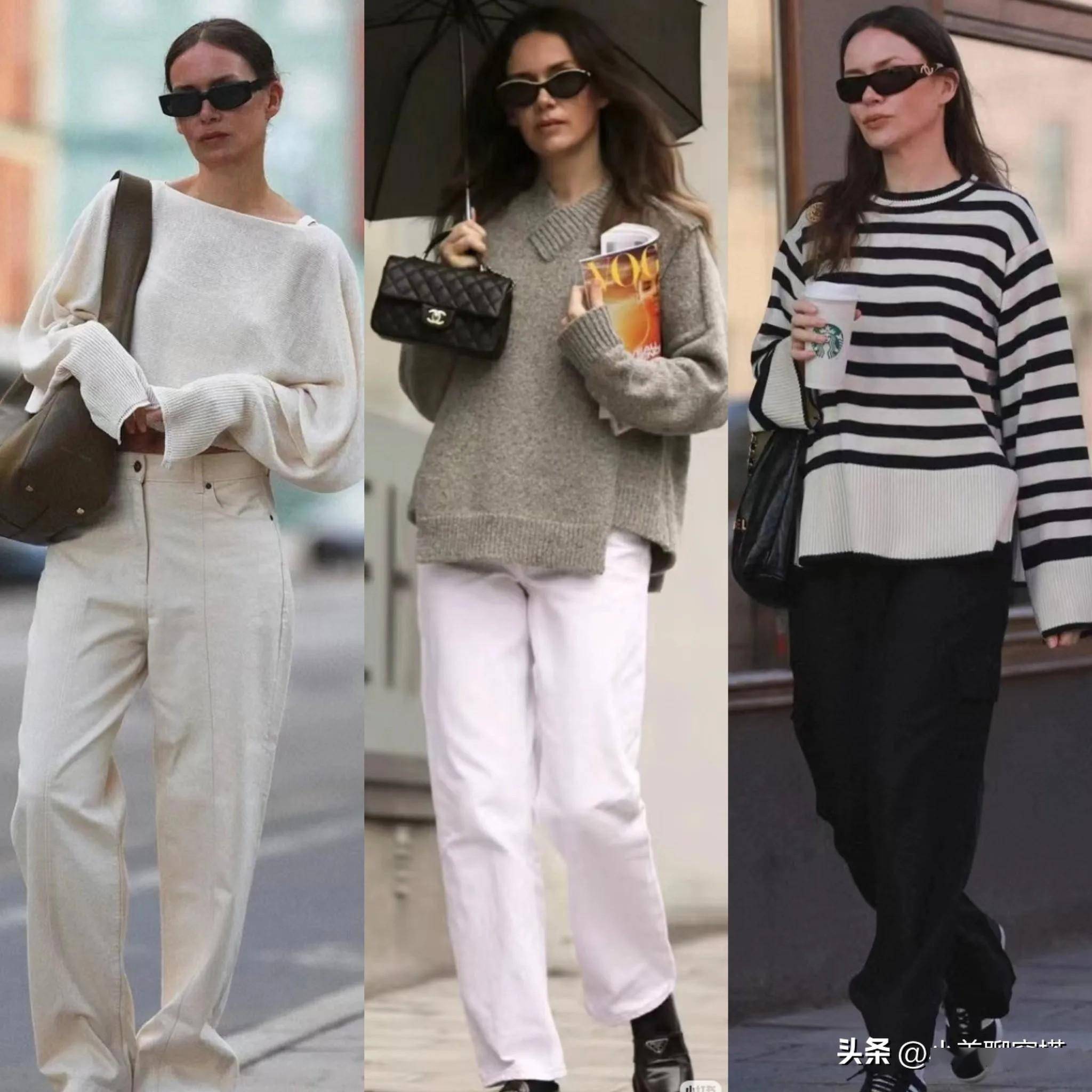 早秋特别适合穿宽松一些的毛衣,它有一定的保暖性,同时又能轻松穿出慵懒的味道,搭配休闲裤或是阔腿裤都OK。