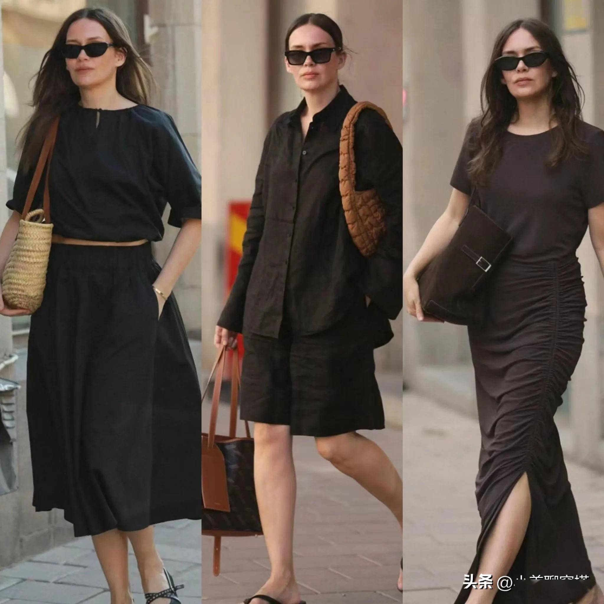 黑色廓形衬衫,简洁随性,搭配黑色短裤,全身黑色的搭配,不挑肤色,单一的配色往往更容易穿出高级感,显瘦效果也是巨好的。