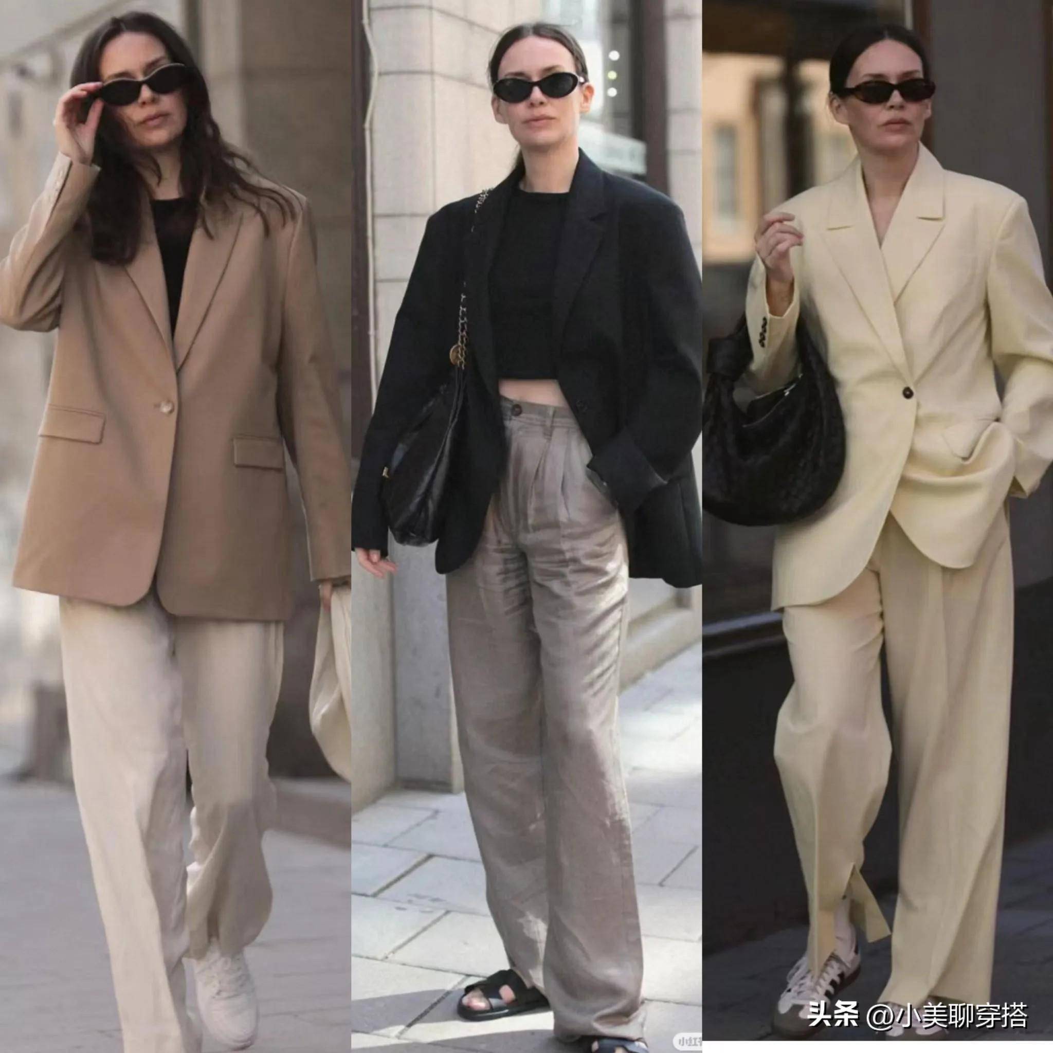 如果是上班,可以选择廓形的卡其色或是咖色西装,颜色更温暖低调,带着优雅知性的魅力,又具有力量感,演绎出职场女性的高智感来。