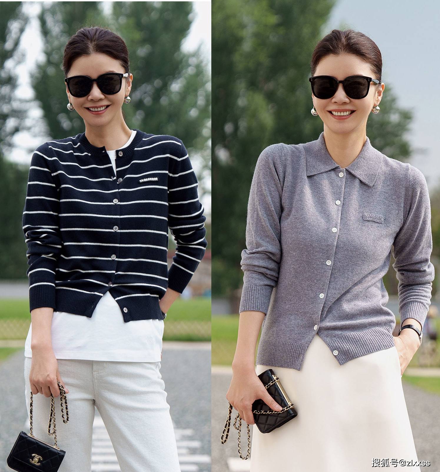 在气温稍凉的时候,我们还可以利用牛仔裤+针织衫+轻薄外套的穿搭组合,将中年女性的独特魅力尽数展现。 在搭配的时候,那么“繁简结合”的搭配不容过错。其中,再用墨镜、丝巾、包包等配饰巧妙点缀,也是穿着者体现出时髦、与品味的关键。
