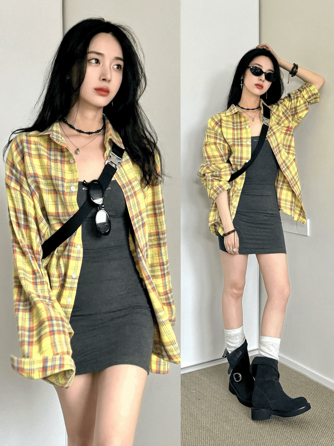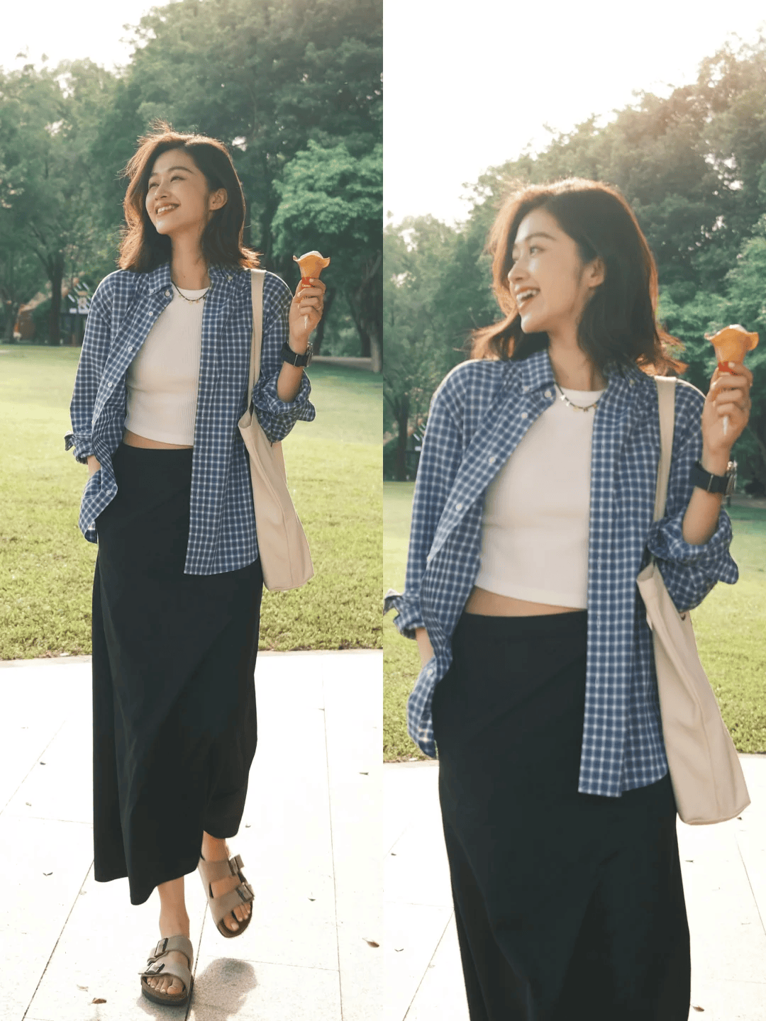 无论是单穿还是外搭,格子衬衫都能以其百搭的特性,让你在轻松驾驭多种风格的同时,展现出自信与从容的姿态。在这个温柔的早秋时节,不妨为自己挑选一件心仪的格子衬衫吧,让它成为你衣橱中的百搭神器,陪伴你度过每一个温暖而美好的日子。