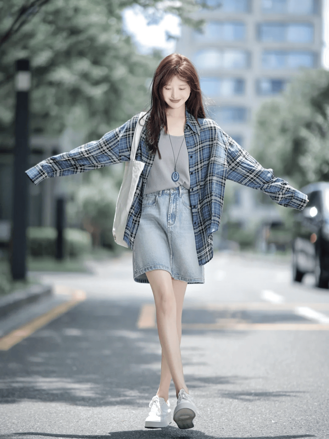 内搭一件纯色打底衫或简约长袖T恤,外披一件色彩鲜明的格子衬衫,不仅能够有效抵御秋日的凉意,还能通过色彩的碰撞与图案的叠加,展现出独特的个人品味。