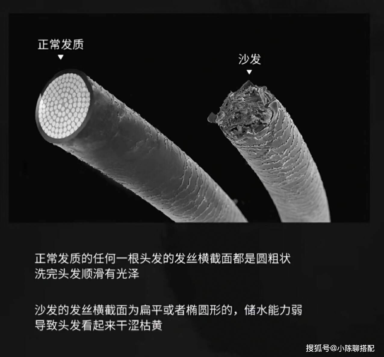 但沙发发丝的横截面通常为扁平或椭圆形的,毛鳞片也基本都是张开的状态,储水能力弱,自然也就容易受到环境影响,变得不可控。