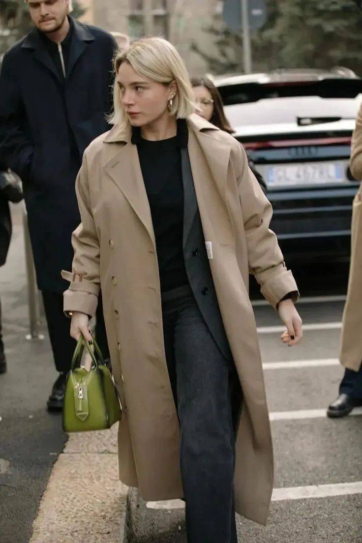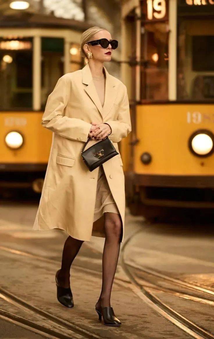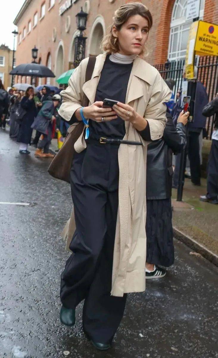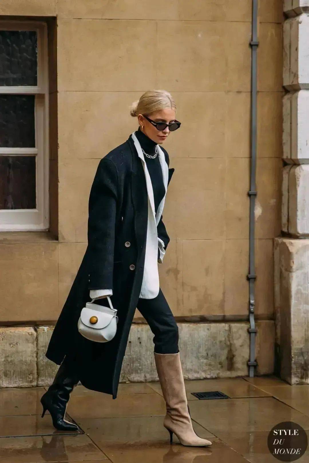 然而,深色并不意味着单调。只要巧妙搭配,即使是最不起眼的单品,比如有一个精致的小包包,整个造型瞬间被点亮。