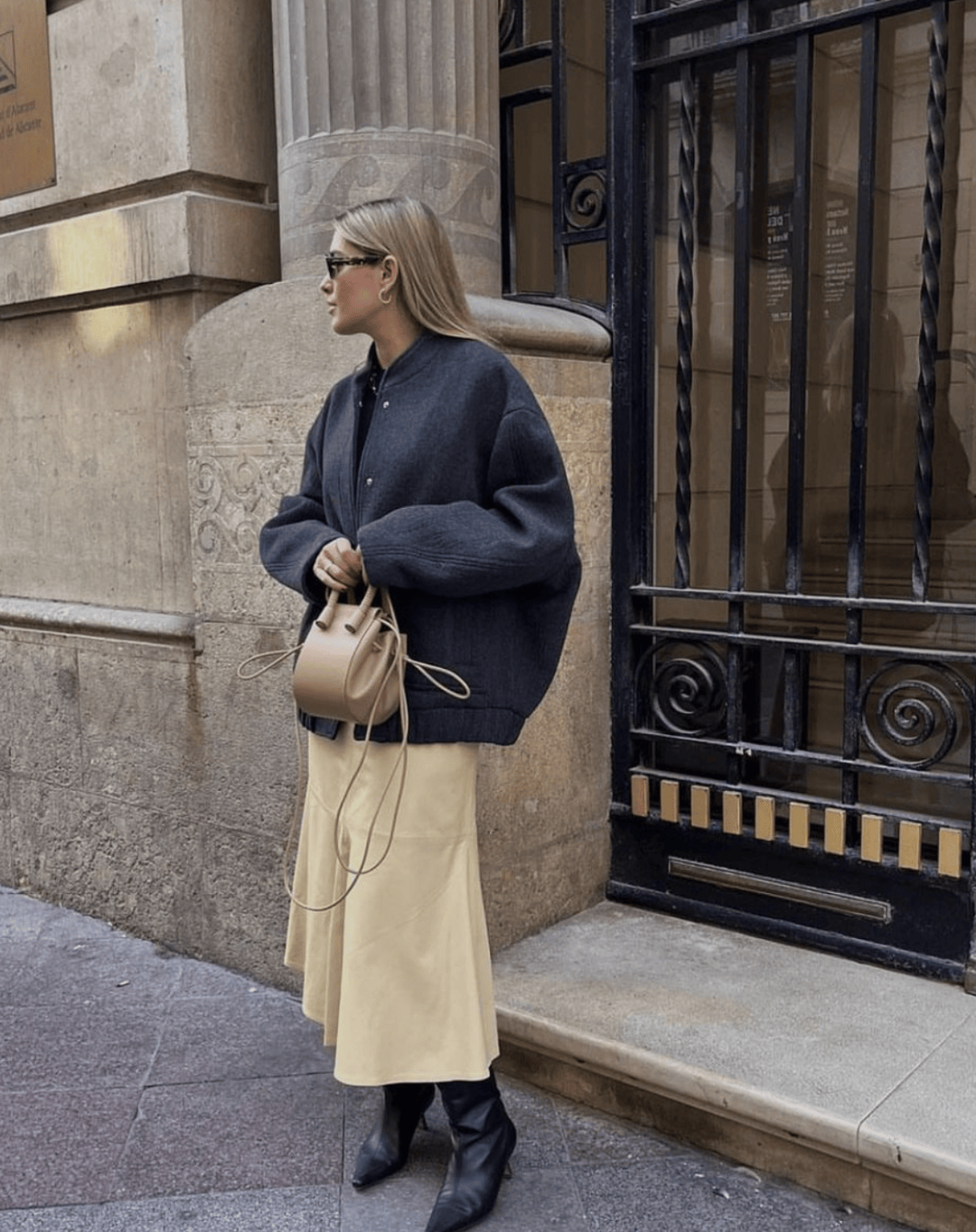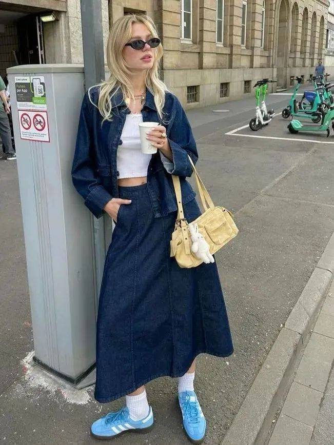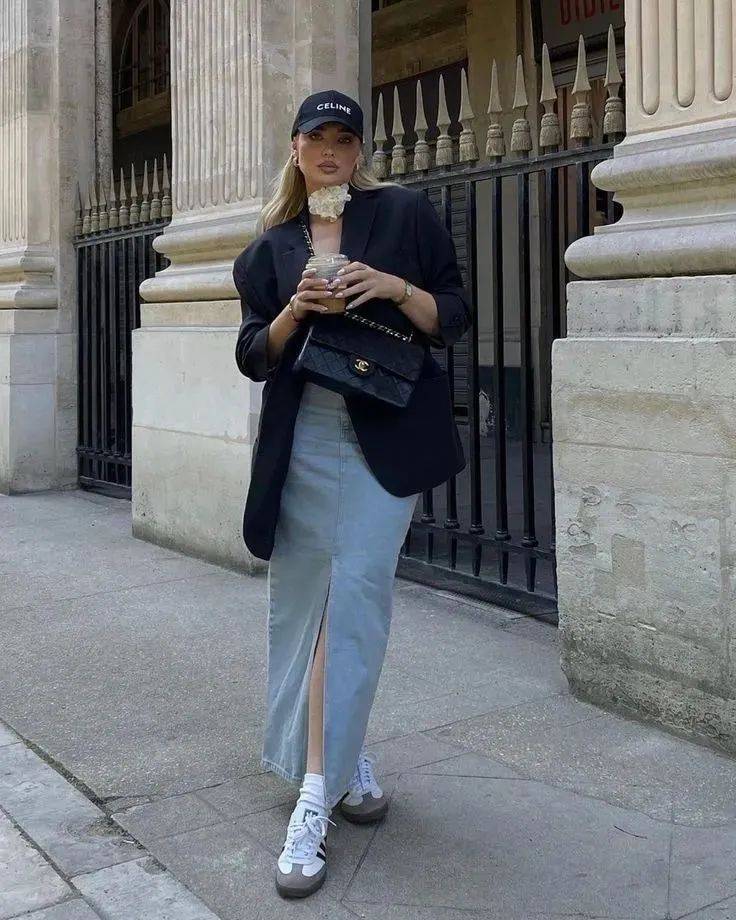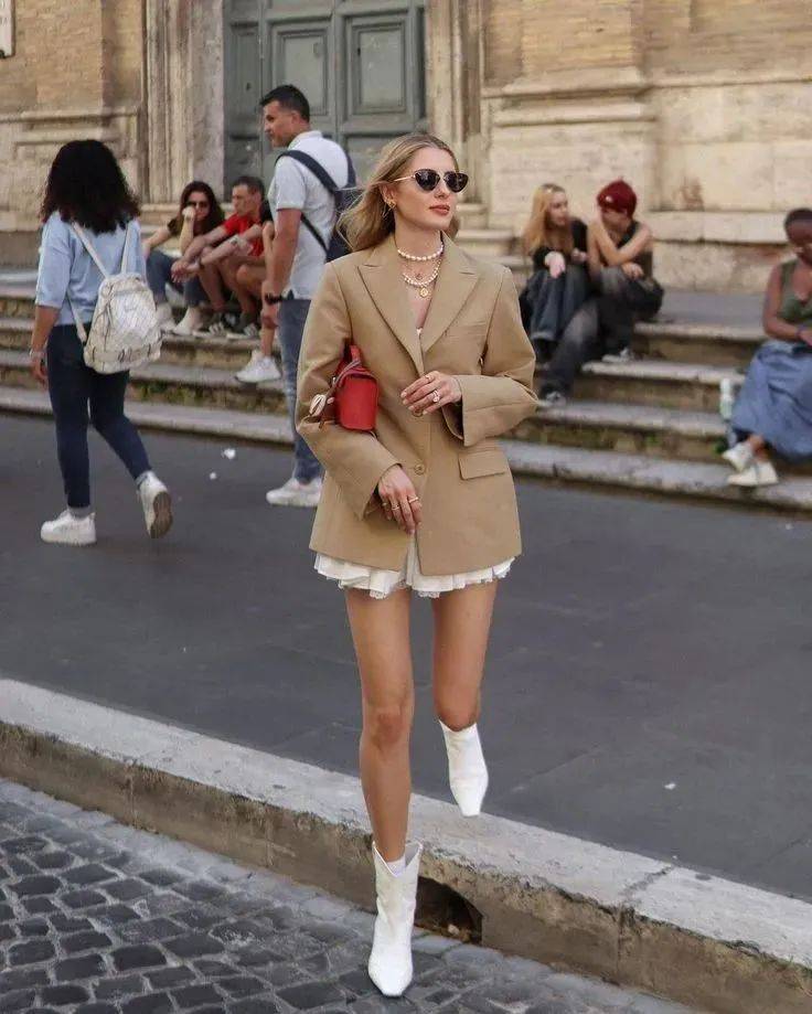 然而,深色并不意味着单调。只要巧妙搭配,即使是最不起眼的单品,比如有一个精致的小包包,整个造型瞬间被点亮。