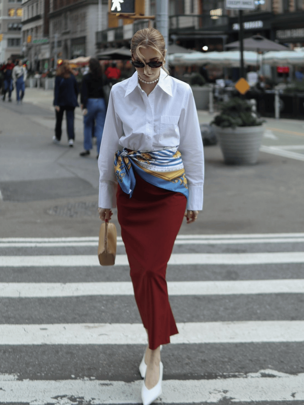 一条复古风格的腰带,可以与一双经典的高跟鞋形成奇妙的呼应。腰带的色调与鞋子的材质若能相互映衬,便能让整个造型更加和谐。