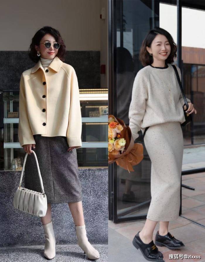 在下装的选择上,小编建议你用同色、或是撞色调的毛呢直筒裙与之相配,自带暖意,格外的显贵。