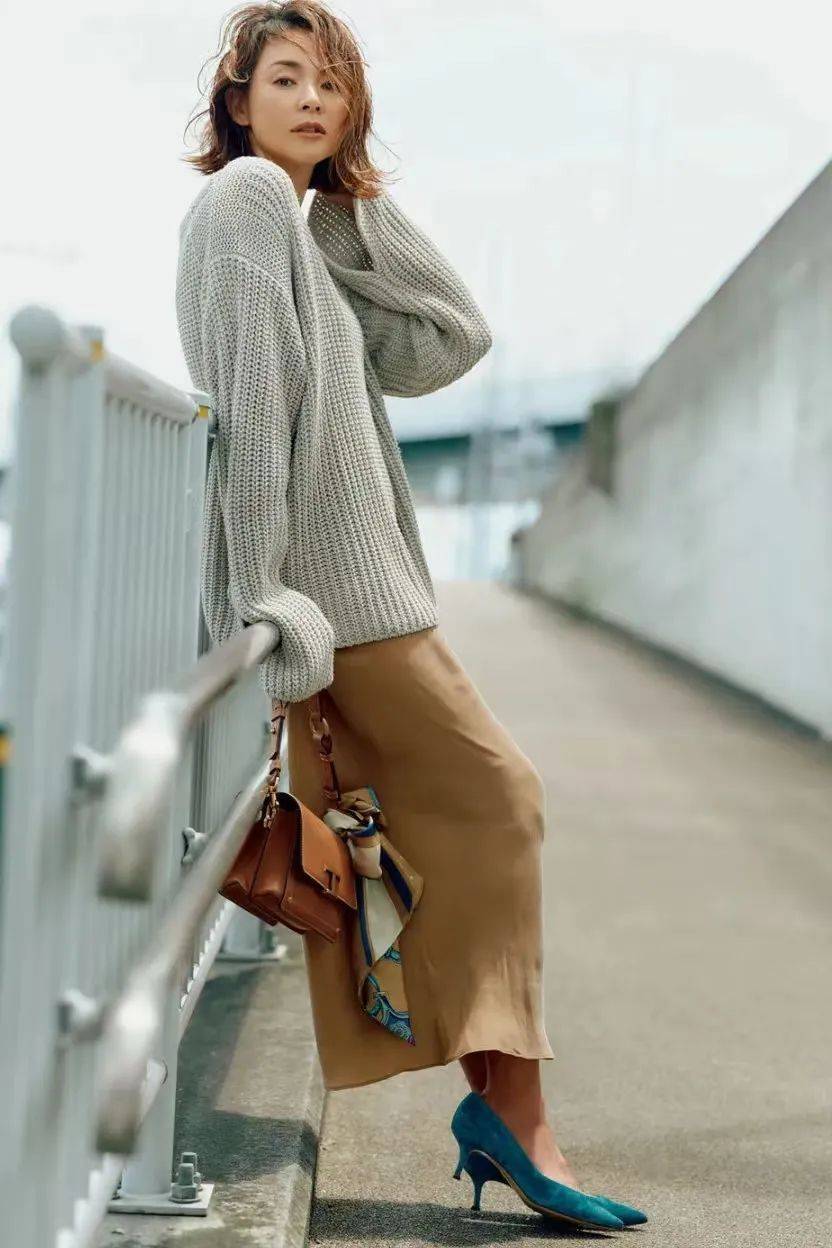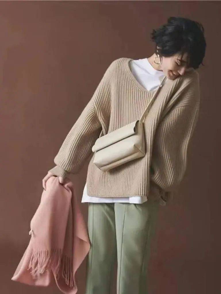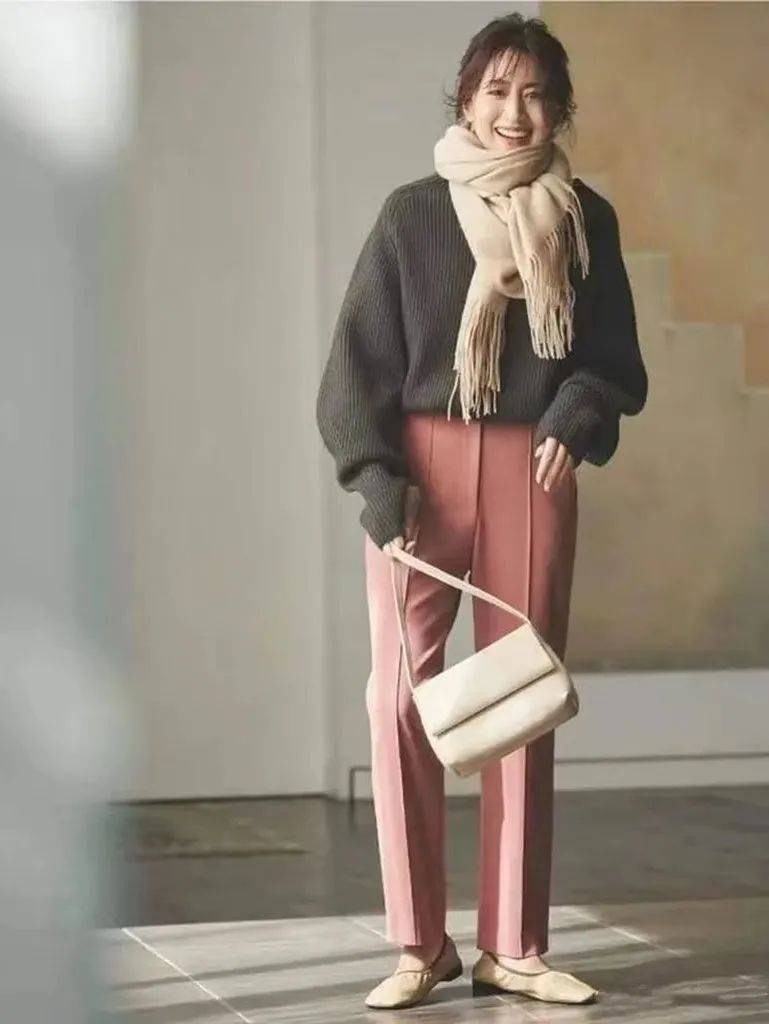 在户外citywalk时,简约风盛行,一件深驼色毛衣搭配牛仔裤or百褶裙,颈间随意系上一条卡其色围巾,便能轻松应对秋冬微凉的气温。
