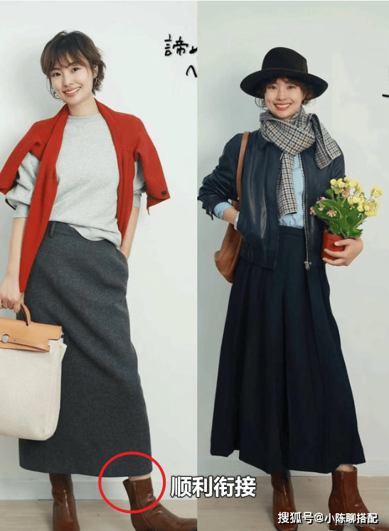 由于秋季更倾向一种温暖感,所以在穿裙子的时候,脚踝留白不可太多。如果裙子较短,应该通过某些方式来截断中间的留白,避免太空白过多显得空泛。