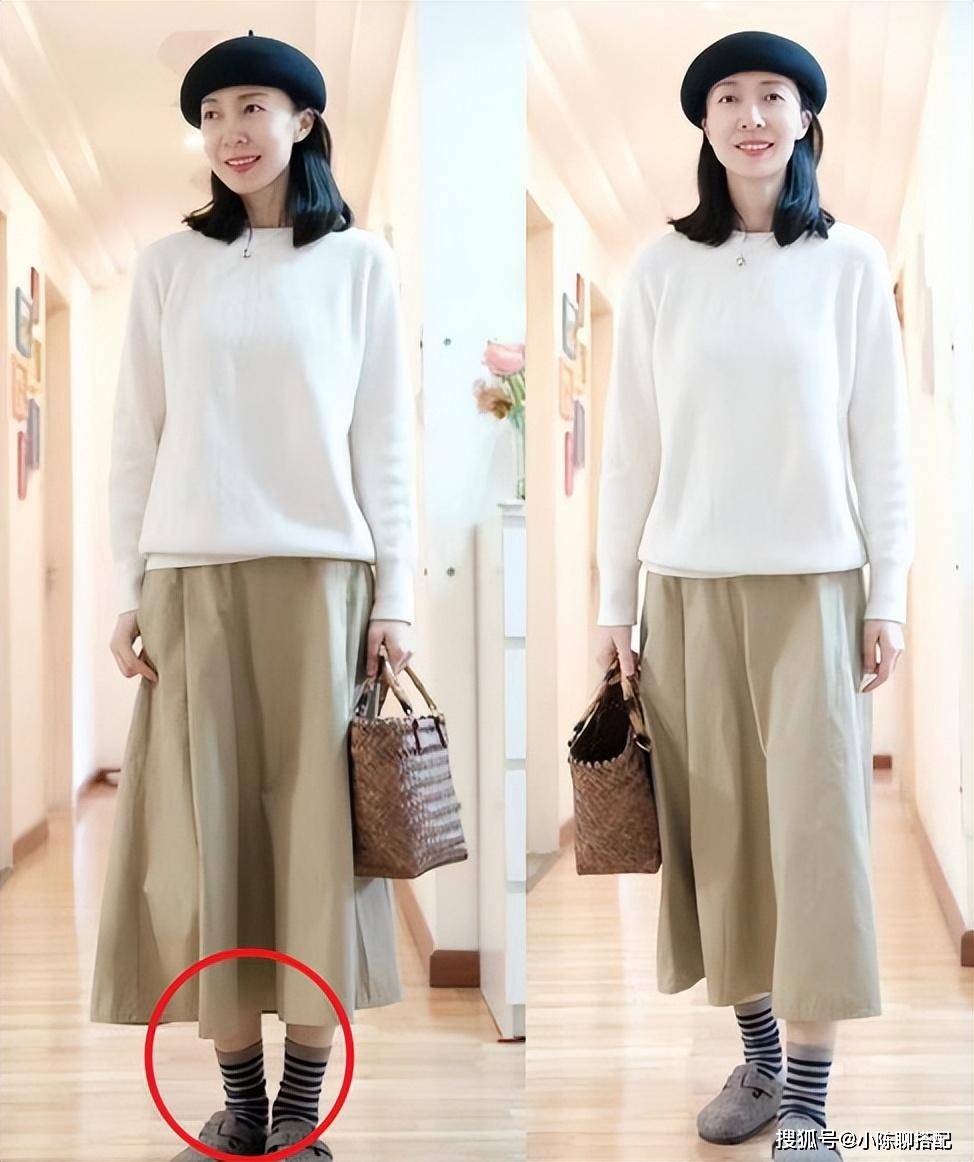 腿型漂亮且长,可以直接考虑膝盖以下足以。而腿型不是很完美,不太高的女性,裙子尽可能到脚踝上方5-15cm左右,极致拉伸腿型,修饰比例,使人看上去更高挑,搭配厚重外套也不会显得头重脚轻。